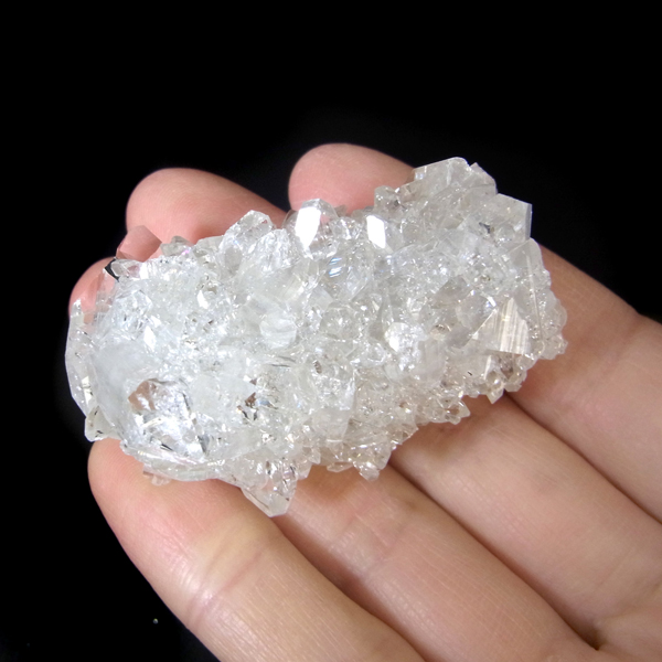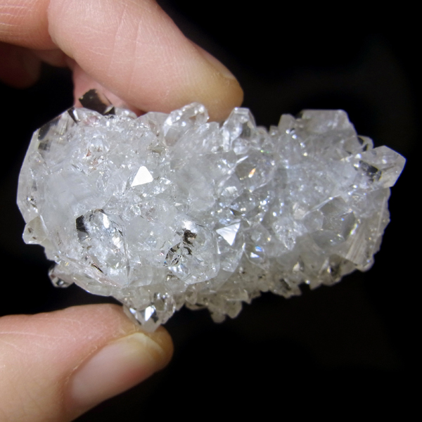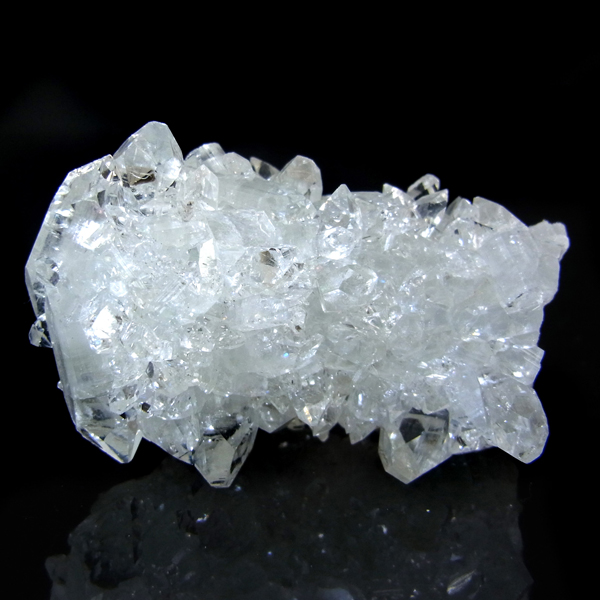 インド、プネー産のアポフィライト原石です。 アポフィライトは、柱状や正方錘状の結晶を持ち、ひとつひとつの結晶が複雑に入り組んだ群晶が水晶とは違う神々しい輝きを魅せてくれます。透明度が非常に高くキラキラ輝き神秘的でとてもきれいです。