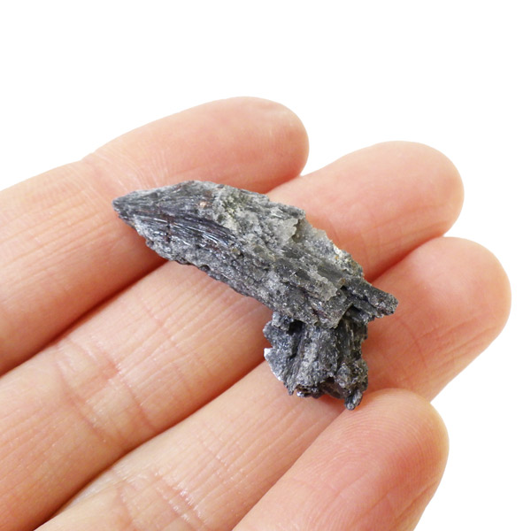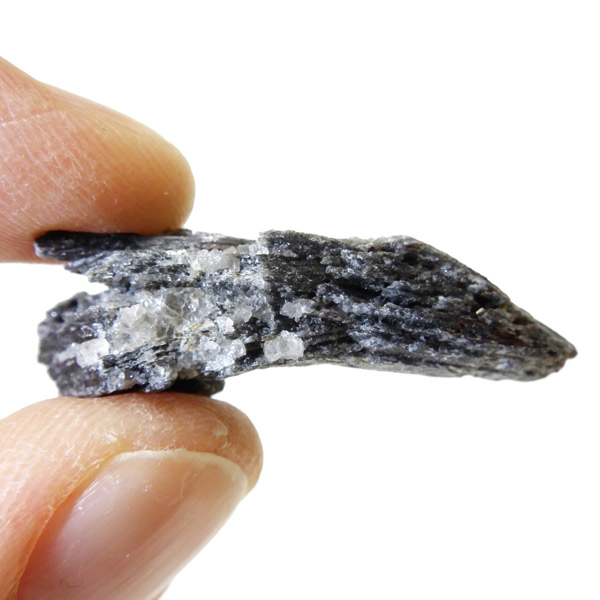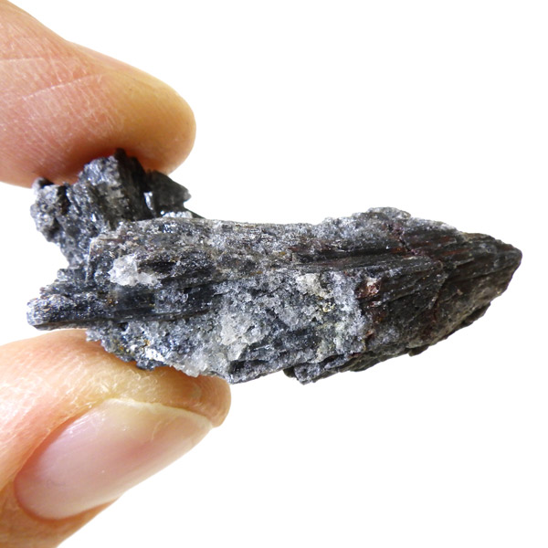 ブラジル産のブラックカイヤナイト原石です。ブラックとシルバーのカラーで光により煌めきが見られます。真っすぐと刃状に伸びる結晶がうっとりする美しさを持っています。