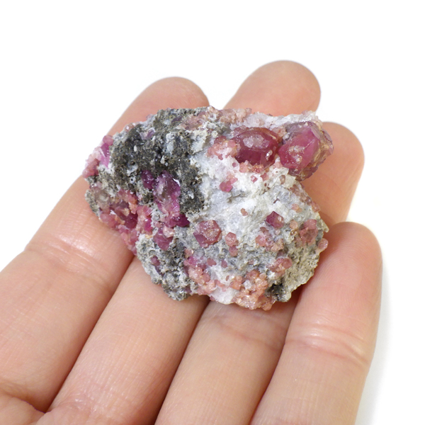 メキシコ産ピンクガーネット原石です。ガーネットというと「赤」という印象が強いですが、純粋なものは紫色をしており、その他にも40種類以上もの色があります。その中の一種で、メキシコ産のピンク色をしたものをピンクガーネット(ローゼライト)と呼びます。