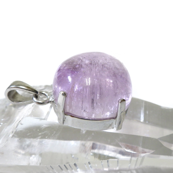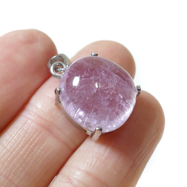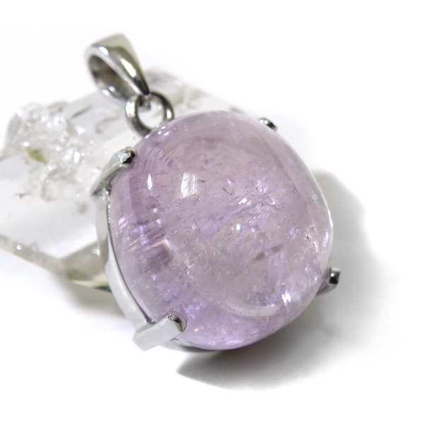 クンツァイトの大粒カボションペンダントトップです。 透明度と発色が抜群に良い大粒のクンツァイトを使用しております。クンツァイトならではの透明感のある優しいピンクの美しさと光を受けた姿に見惚れます。アメジストやローズクォーツにはない上品な色合い。やさしさ、かわいさ、上品さを兼ね備えたクンツァイトのペンダントトップです。