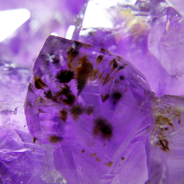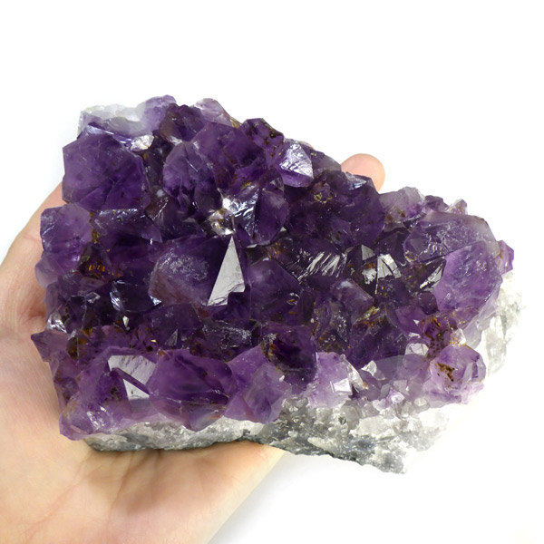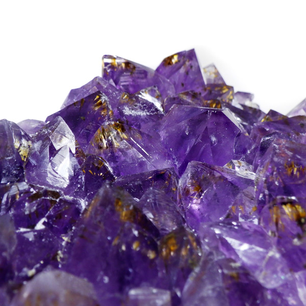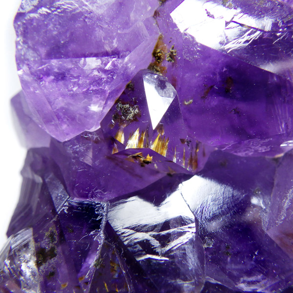 ブラジル産のカコクセナイトインアメジストクラスターです。深い紫の結晶の中に金のカコクセナイトがインクリュージョンされております。一粒の結晶が大きくパワフルな印象です。