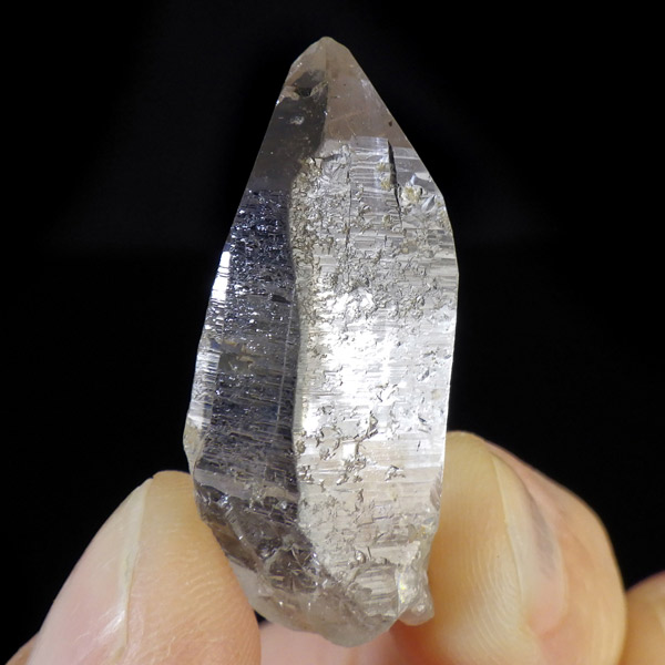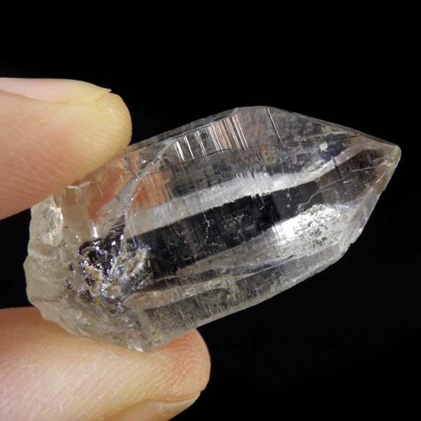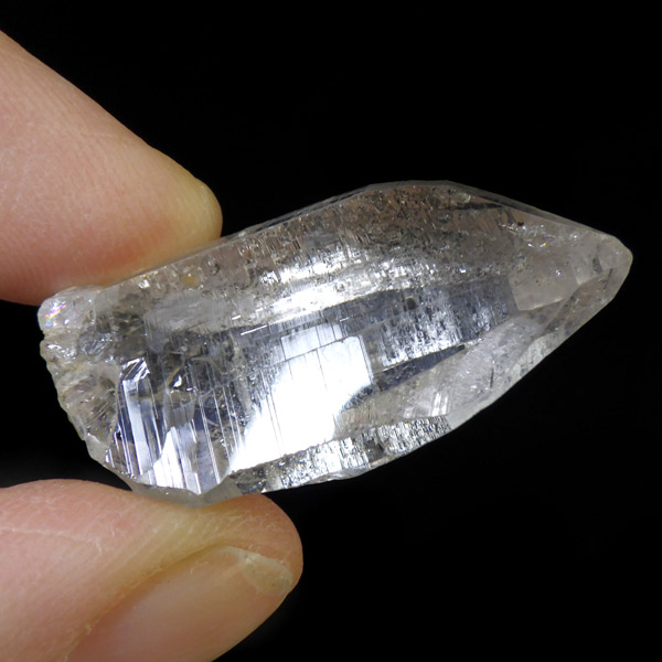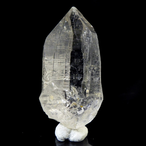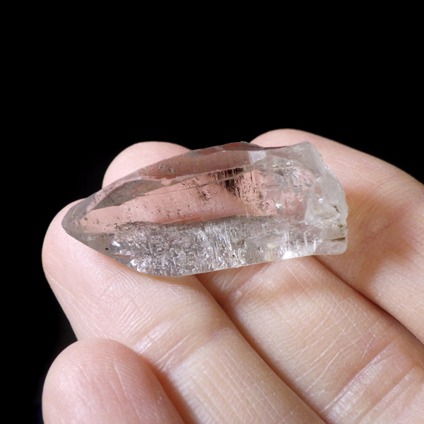 ネパールのガネーシュヒマール産水晶は「ぬめり」と表現される、水にぬれたような独特な光沢が特長です。ガネーシュヒマールとは、ネパール東端に位置する山の名前です。透明度も大変高く、クッキリと背景が透けて見えます。表面にはバーコード状の成長線が入っています。透明の結晶は本当に美しいです。エッジの効いたシャープな姿も魅力的です。