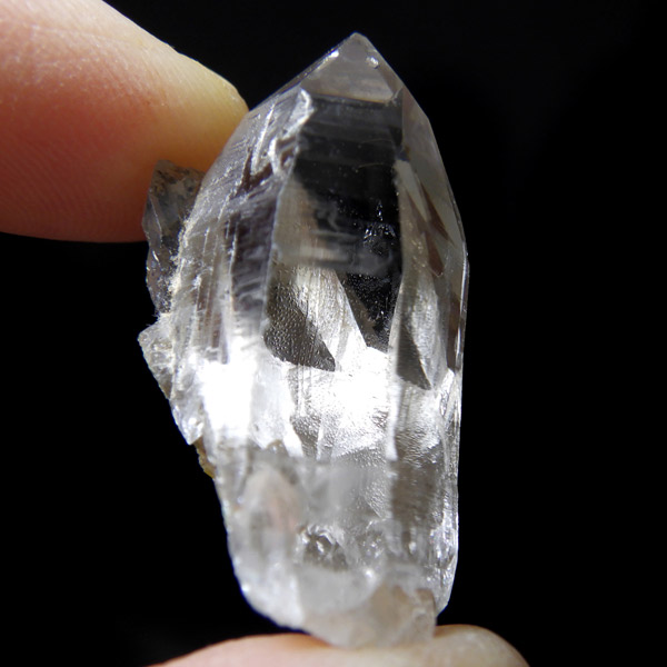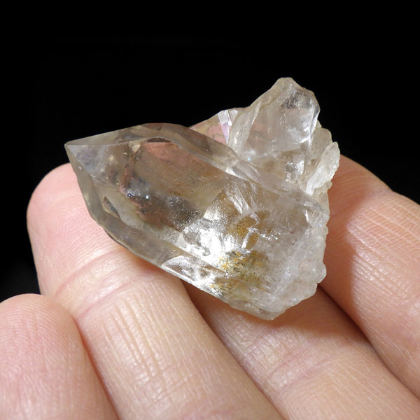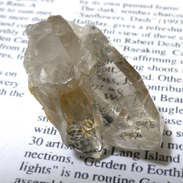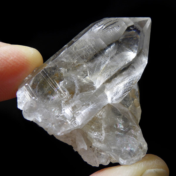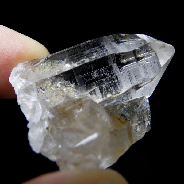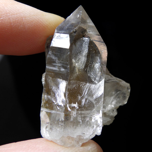 ネパールのガネーシュヒマール産水晶は「ぬめり」と表現される、水にぬれたような独特な光沢が特長です。ガネーシュヒマールとは、ネパール東端に位置する山の名前です。透明度も大変高く、クッキリと背景が透けて見えます。表面にはバーコード状の成長線が入っています。透明の結晶は本当に美しいです。エッジの効いたシャープな姿も魅力的です。
