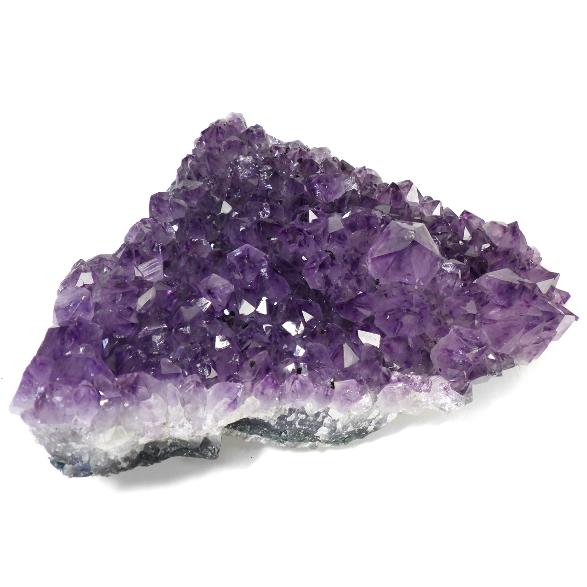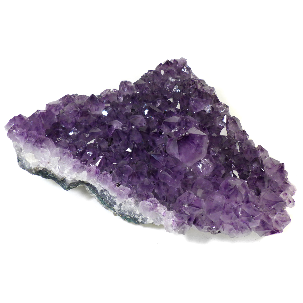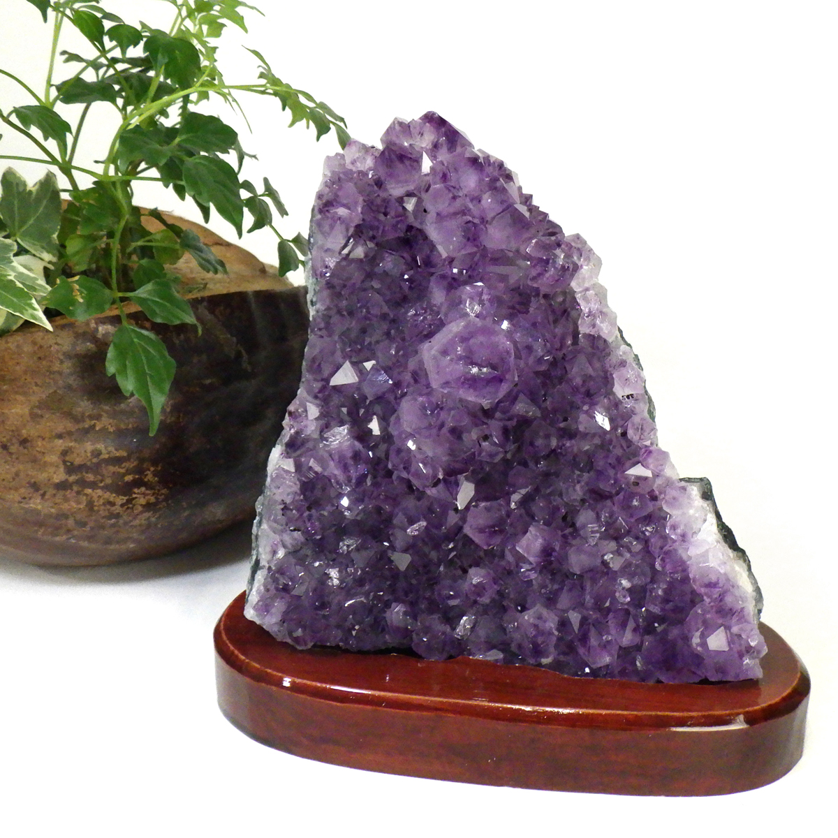 ブラジル産の大き目サイズのアメジストクラスターです。一つ一つの結晶が大きく成長したアメジストクラスターです。透明感があり、上質なアメジストの証である紫の色がしっかりと入っております。ブレスレットの浄化用や空間の浄化用にトイレなどに置いていただくといいと思います。専用の木製台付きですが平置きされても良いかと思います。大きさがあるのでブレスレットがいっぱい掛けられます。大きさ、質、共に上級のクラスターですので満足いただけると思います。