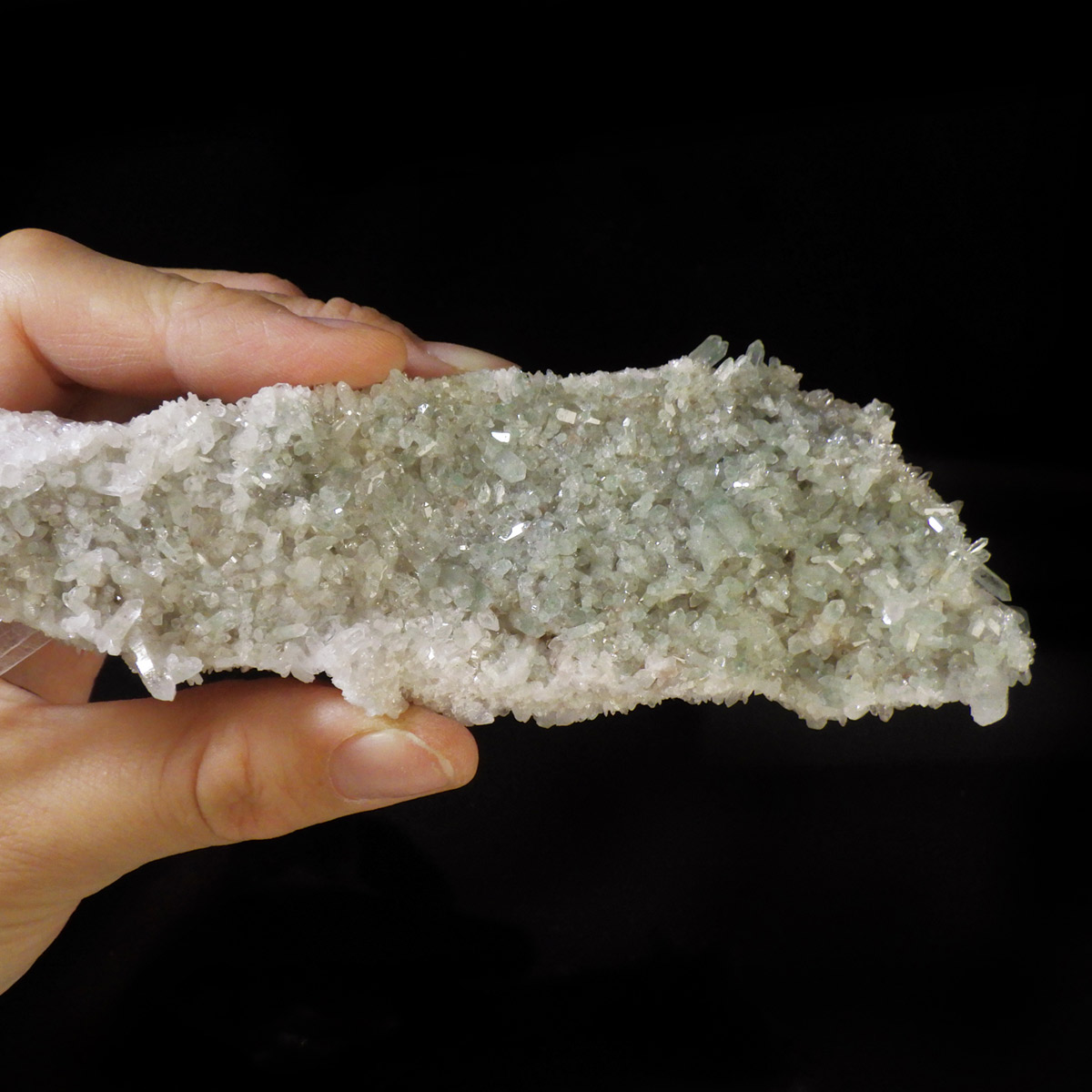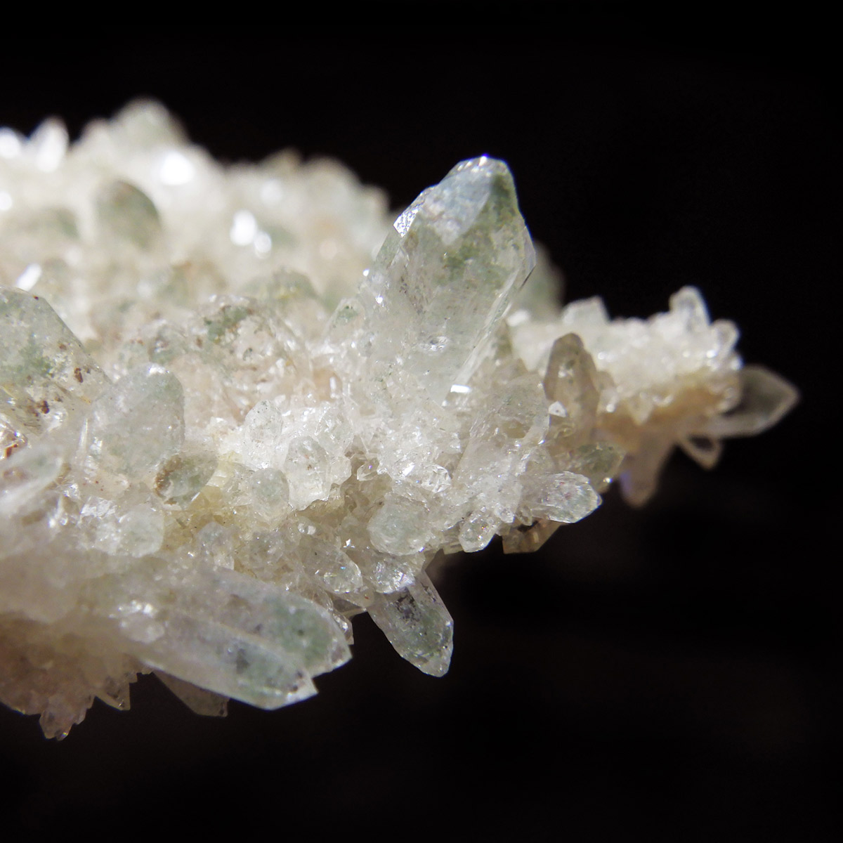 インド・ヒマラヤ山脈にあるパールバティー渓谷産の水晶クラスターです。この地で採掘される水晶には表面がピンク、又はグリーンをしたものがよく見られます。ピンク色の水晶といえばローズクォーツが有名ですが、それとは別で土壌に含まれる赤褐色をした酸化鉄により表面や母岩部がピンク色になっています。ほんのりと淡いピンク色や濃いピンク色、オレンジがかったピンク色などそれぞれ微妙に色合いも違います。グリーンはクローライトを内包したものになります。