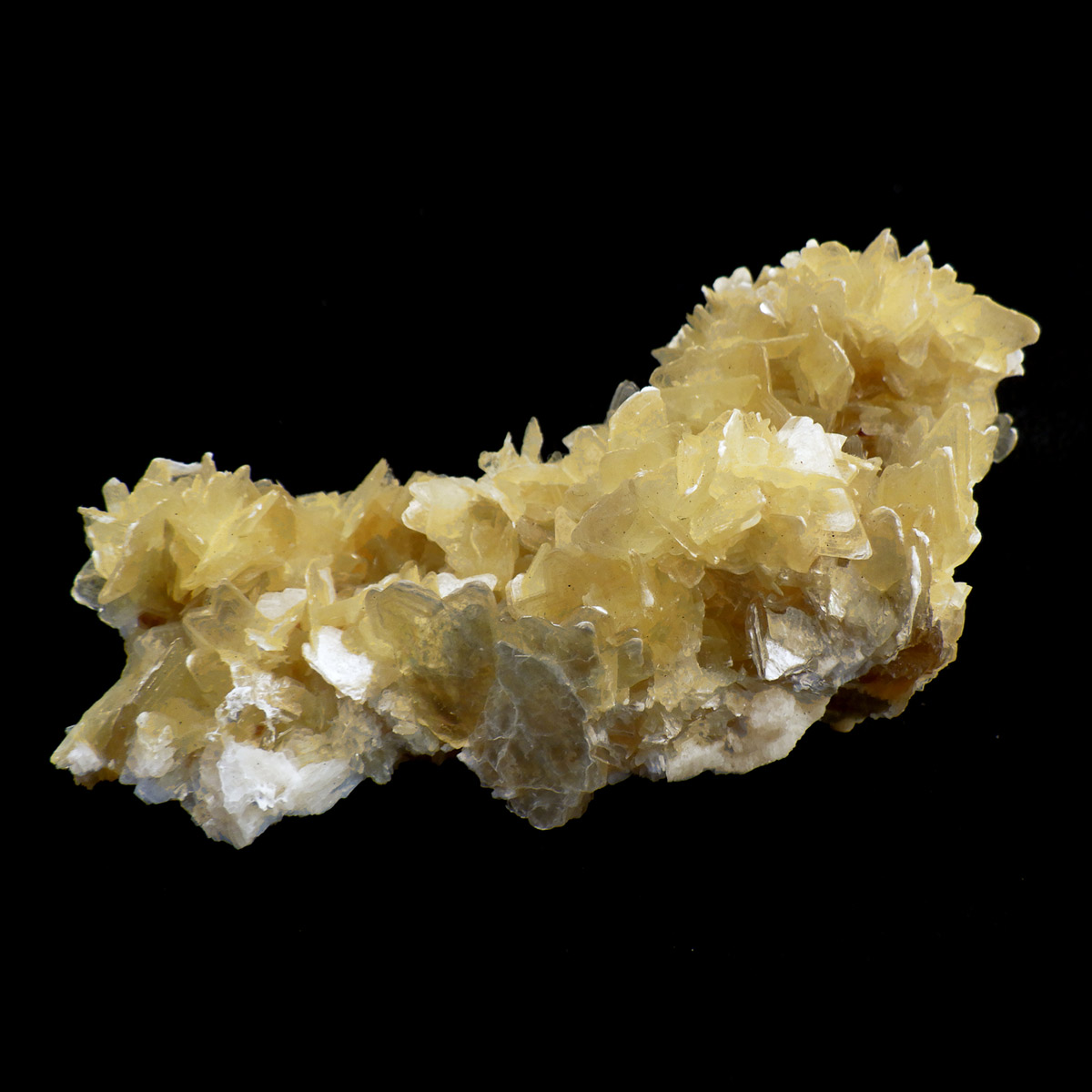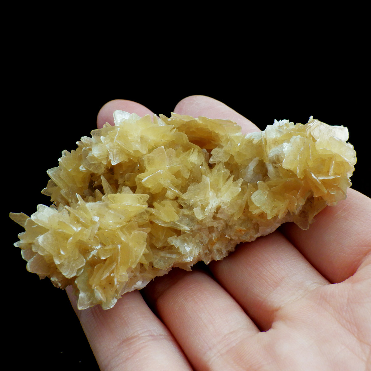 ブラジル産の星の形をした白雲母、その形状からスターマイカと呼ばれています。雲母は、鱗板状や丸まった形など様々ですが、スターマイカは星型の雲母で、主にブラジル・ミナスジェライス州で産出されます。鉱物名としては「白雲母双晶」ですが、「双晶」とは二つの結晶が一定の角度で合わさって、一つの結晶になっているものを言い、雲母は普通六角板ですが、双晶になり星のように見えます。雲母の結晶は淡い金色で、まさに星がたくさん集まったようにきれいに輝きます。