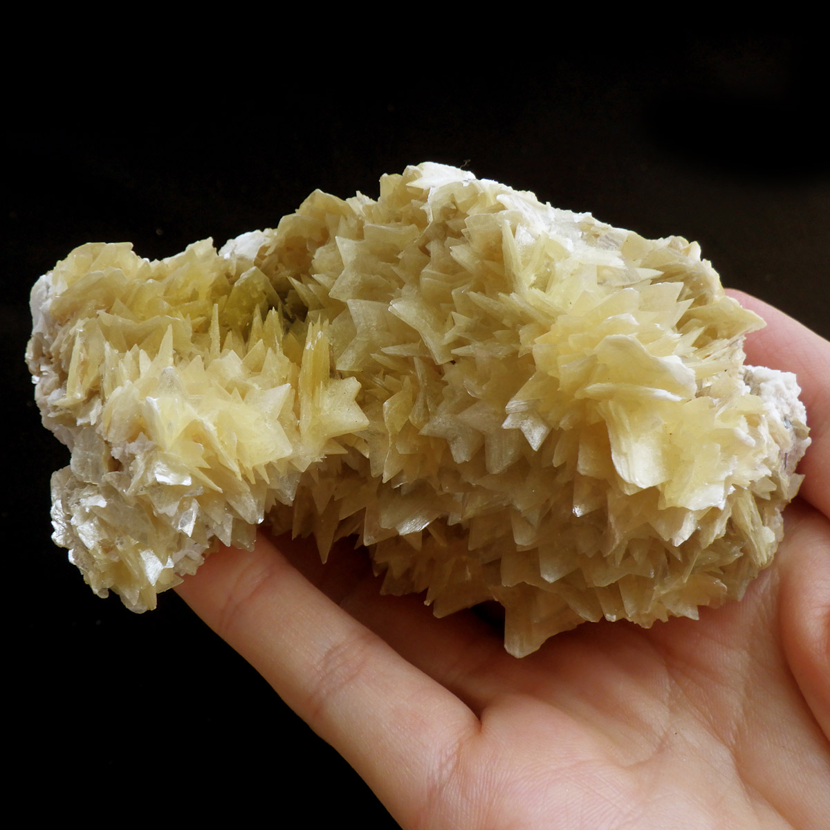 ブラジル産の星の形をした白雲母、その形状からスターマイカと呼ばれています。雲母は、鱗板状や丸まった形など様々ですが、スターマイカは星型の雲母で、主にブラジル・ミナスジェライス州で産出されます。鉱物名としては「白雲母双晶」ですが、「双晶」とは二つの結晶が一定の角度で合わさって、一つの結晶になっているものを言い、雲母は普通六角板ですが、双晶になり星のように見えます。雲母の結晶は淡い金色で、まさに星がたくさん集まったようにきれいに輝きます。