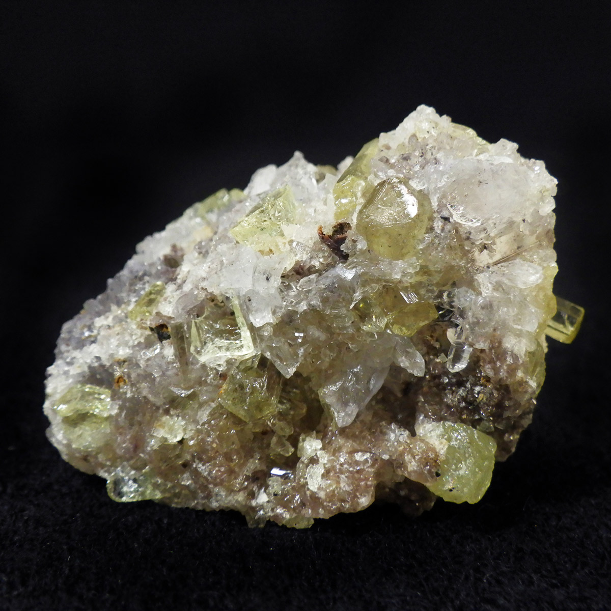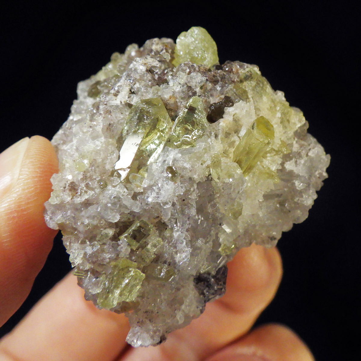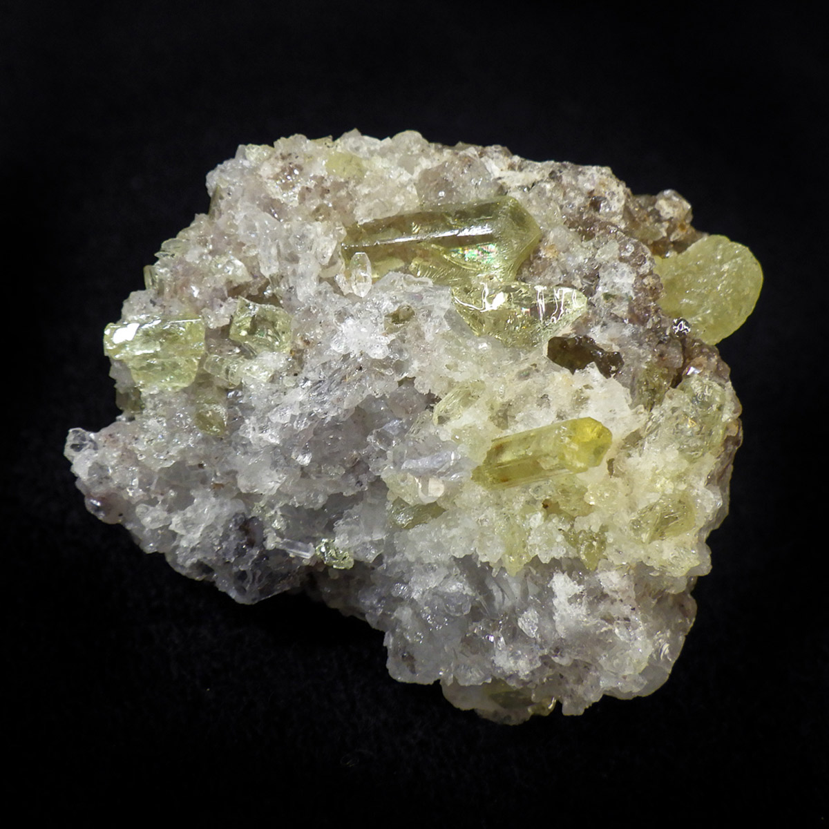 メキシコ産イエローアパタイトの母岩付き結晶原石です。 非常に透明度の高い、イエローグリーンの六角柱や六角板がキラキラと、大変美しく魅了されます。 角度によってはキラりとレインボーが輝き、とても高品質で貴重な一点です。 透明度の高い綺麗な結晶を持つため、宝石としても使用されます。 ミネラルの中でも、最もマイナスイオンを発することから、「究極の癒し系パワーストーン」と言われています。