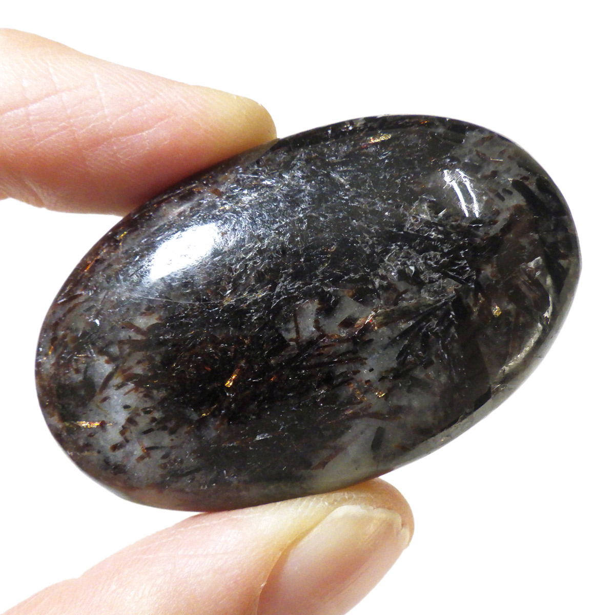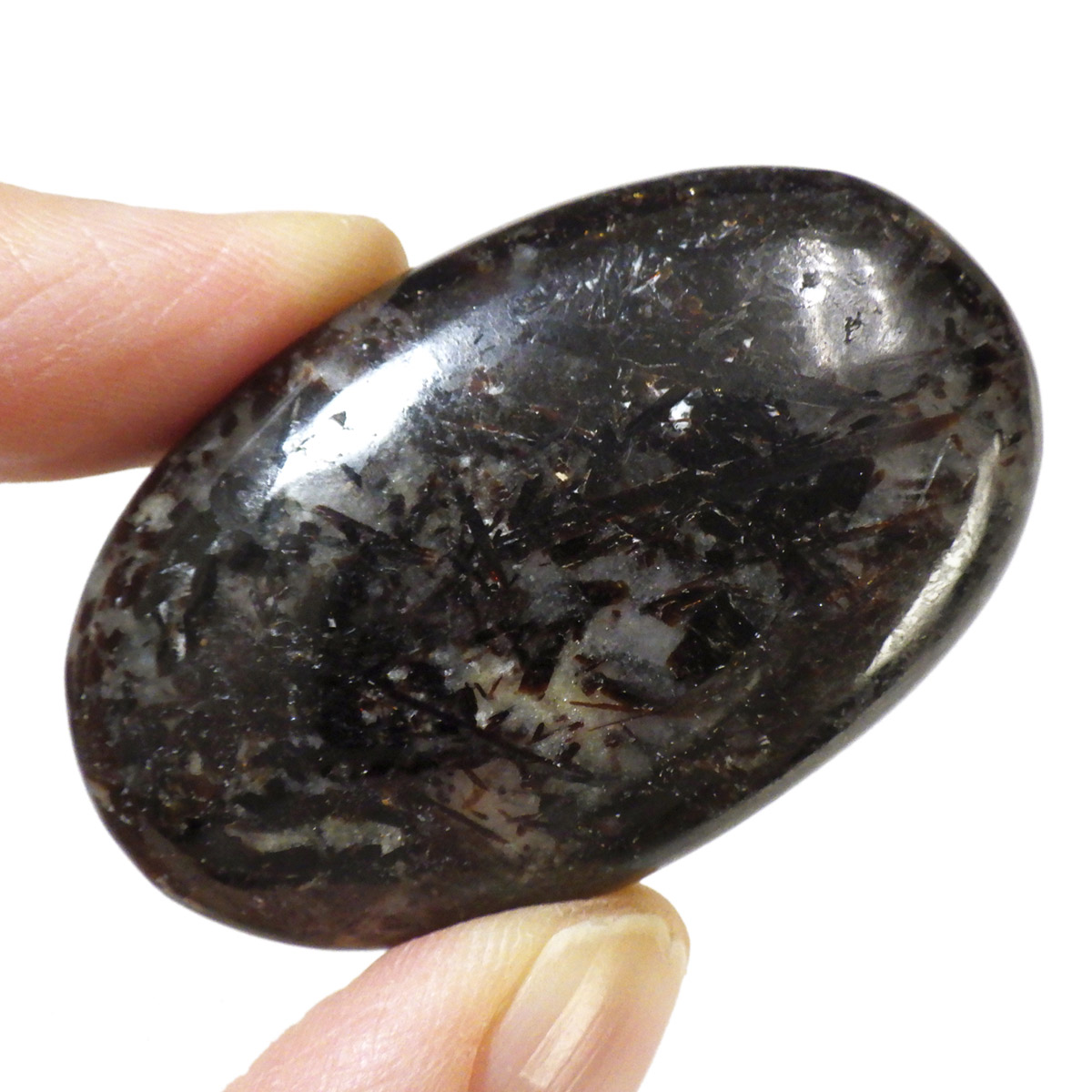 ロシア産、アストロフィライトのペブルです。アストロフィライトは、キラキラとした黄金色の金属光沢がとても美しい石です。 無数の針板状に伸びた結晶の形が特徴で、金属の光は「流れ星」や「太陽」をイメージさせられます。「アストロフィライト」の名前の由来は、ギリシア語の「星」と、「葉」を意味する単語を組み合わせてつけられたものです。和名は星葉石。アルバイト、エジリン、アルベゾナイト、ジルコン、アラゴナイト、ブルッカイトなどと共に産出することが多いとされています。
