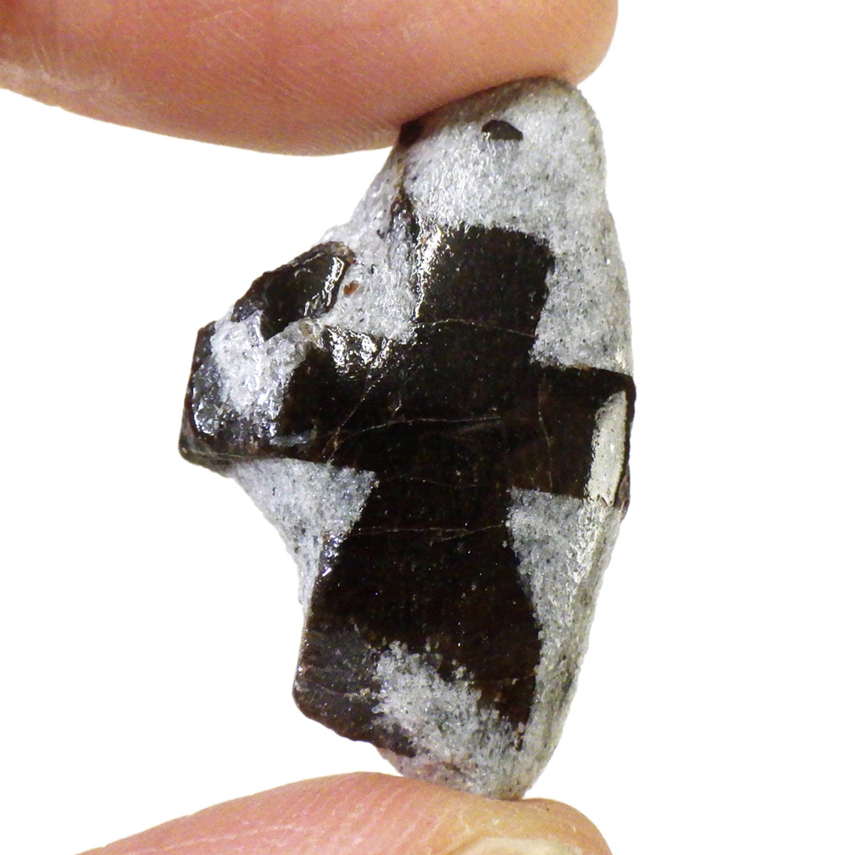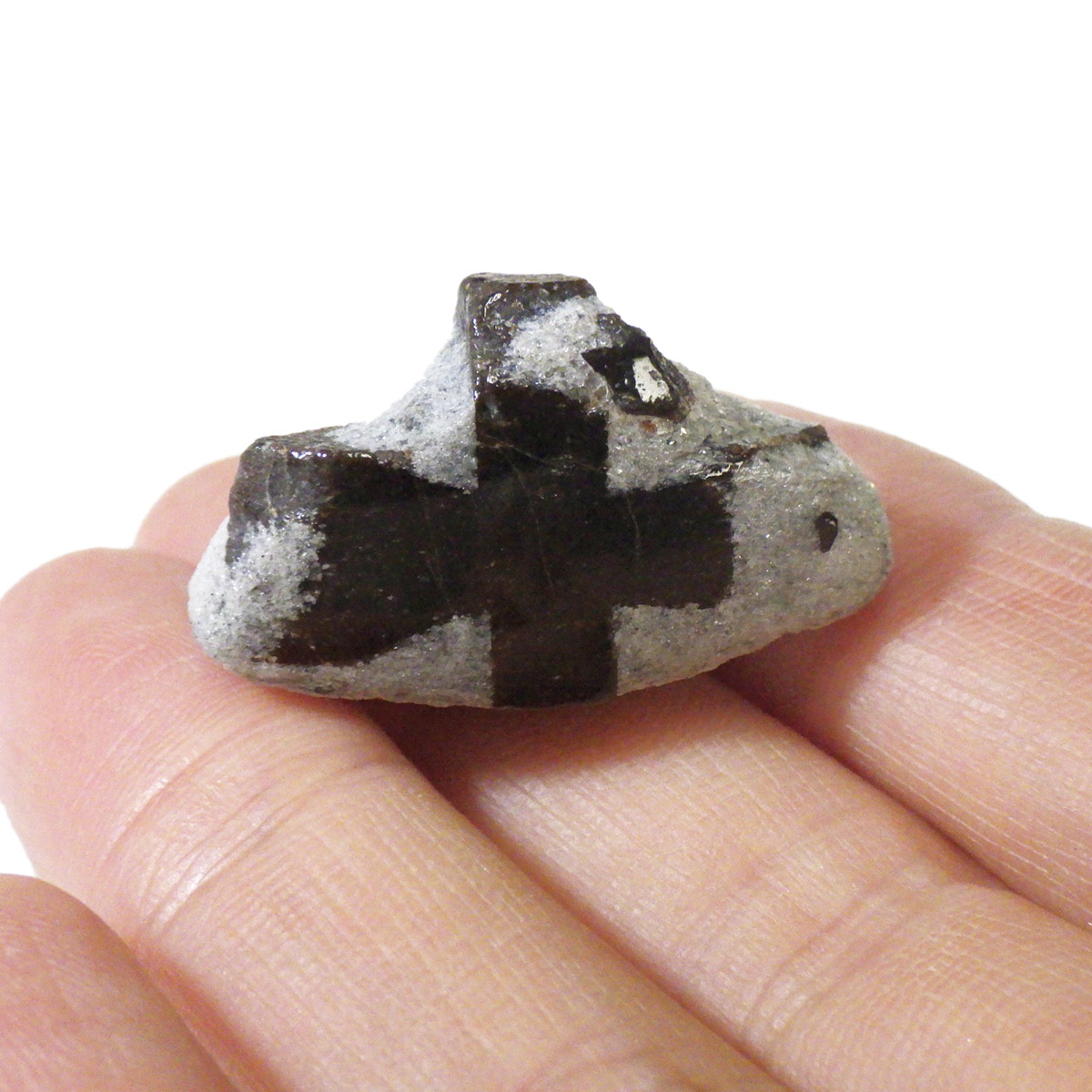 スタウロライトの表面部分をポリッシュ(研磨)しており、十字がよりくっきり光り輝いています。表面以外は研磨していません。きっちり90度で交わっているものの方が評価が高くなります。