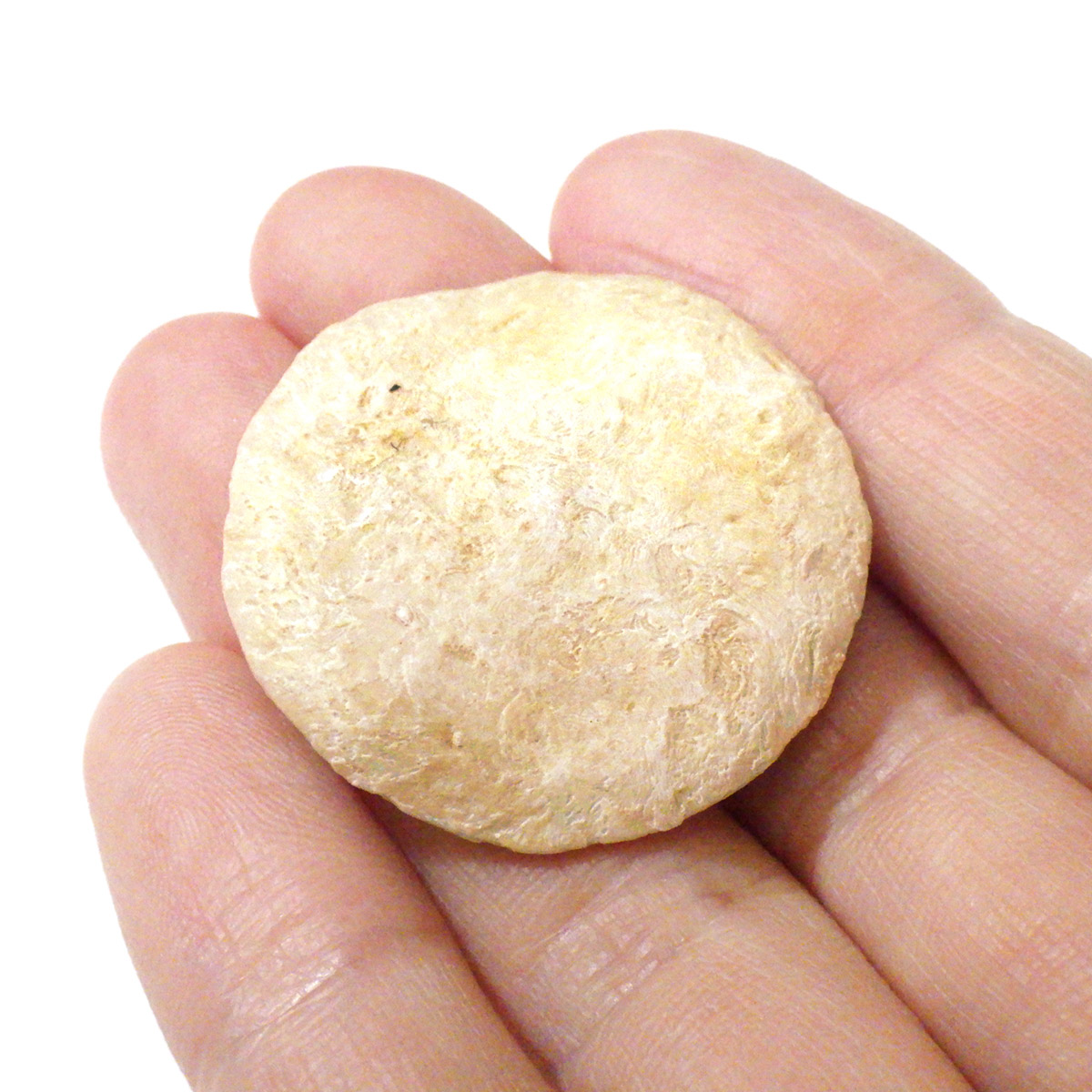 和名は貨幣石(かへいせき)といい、学名=Nummlites(ヌムリテス)といいます。