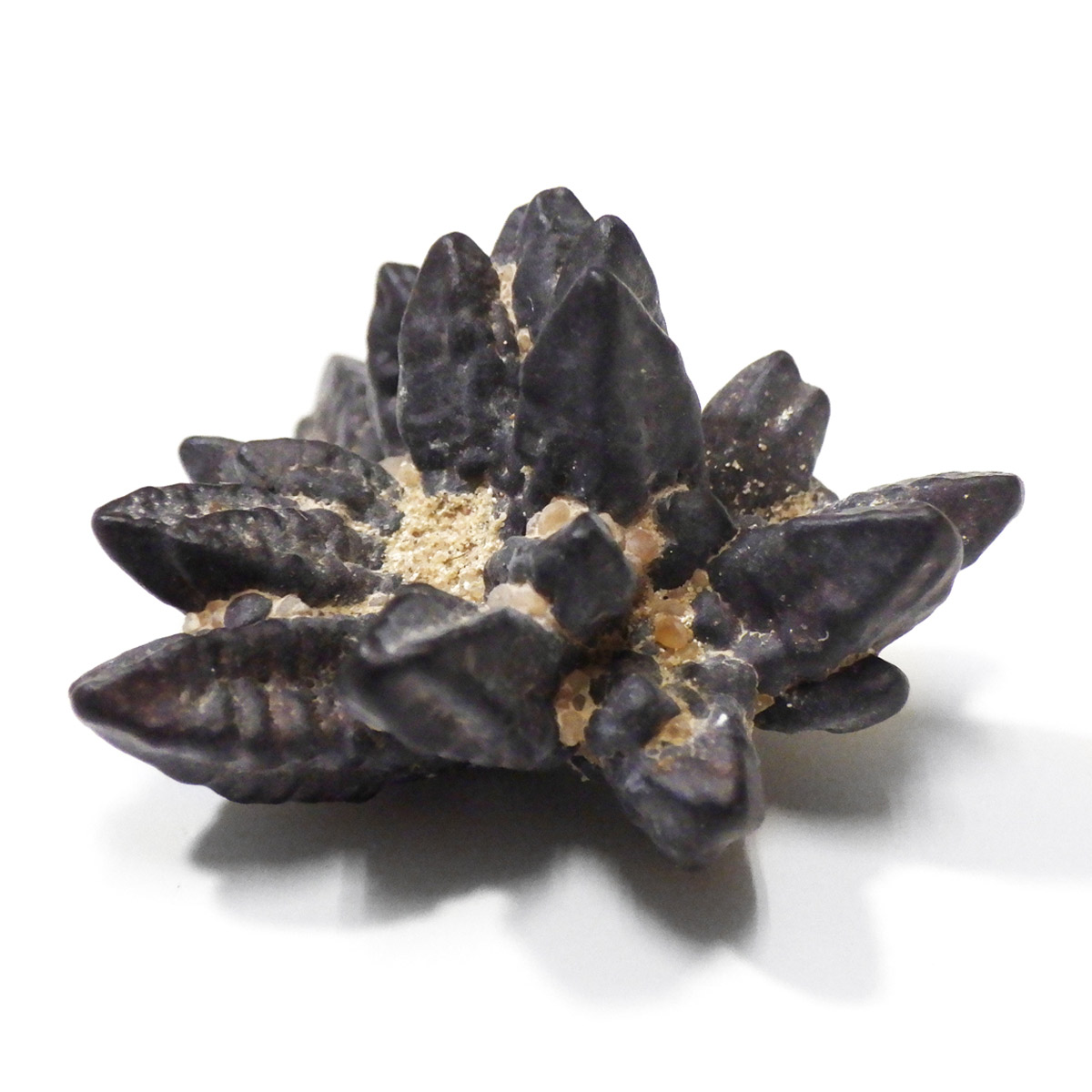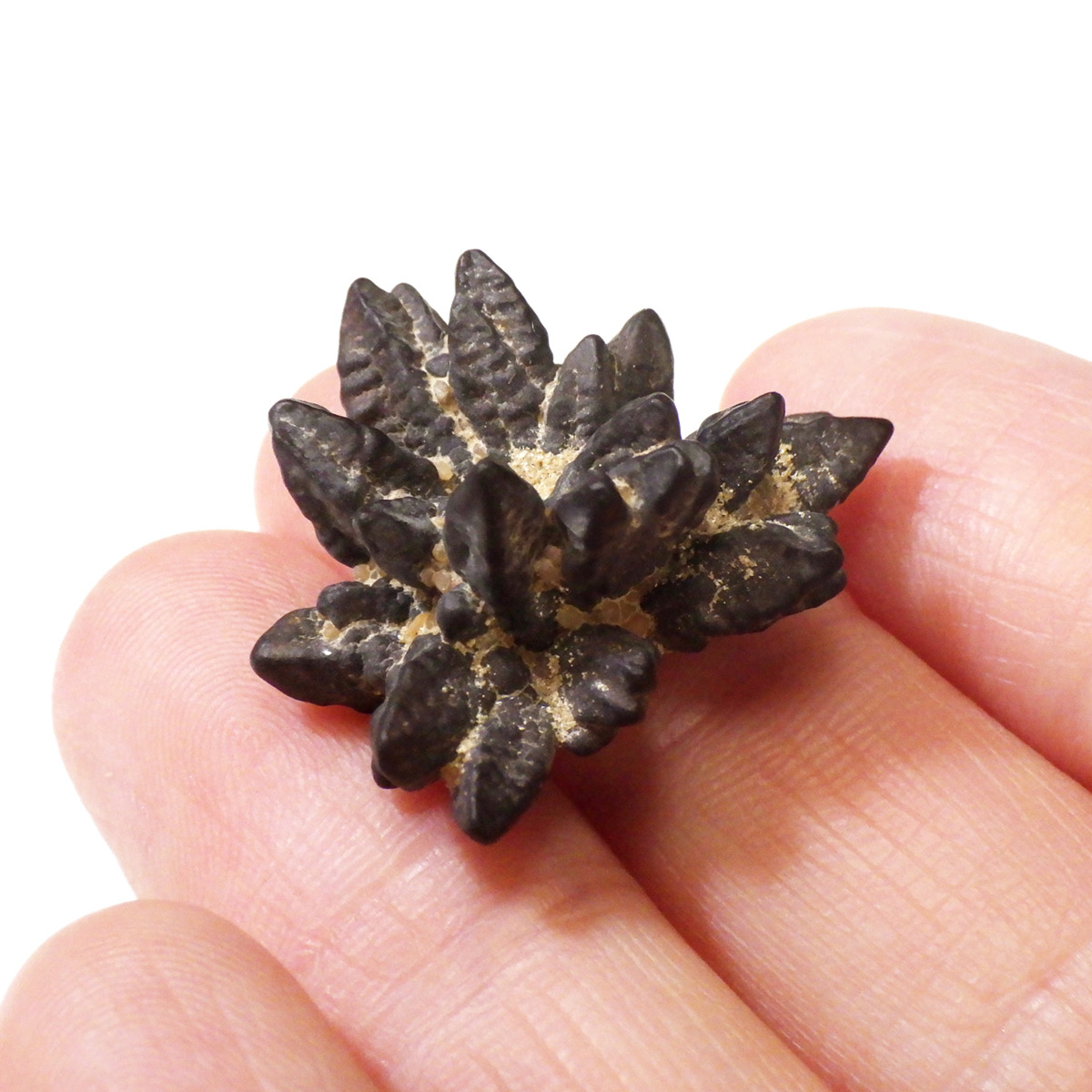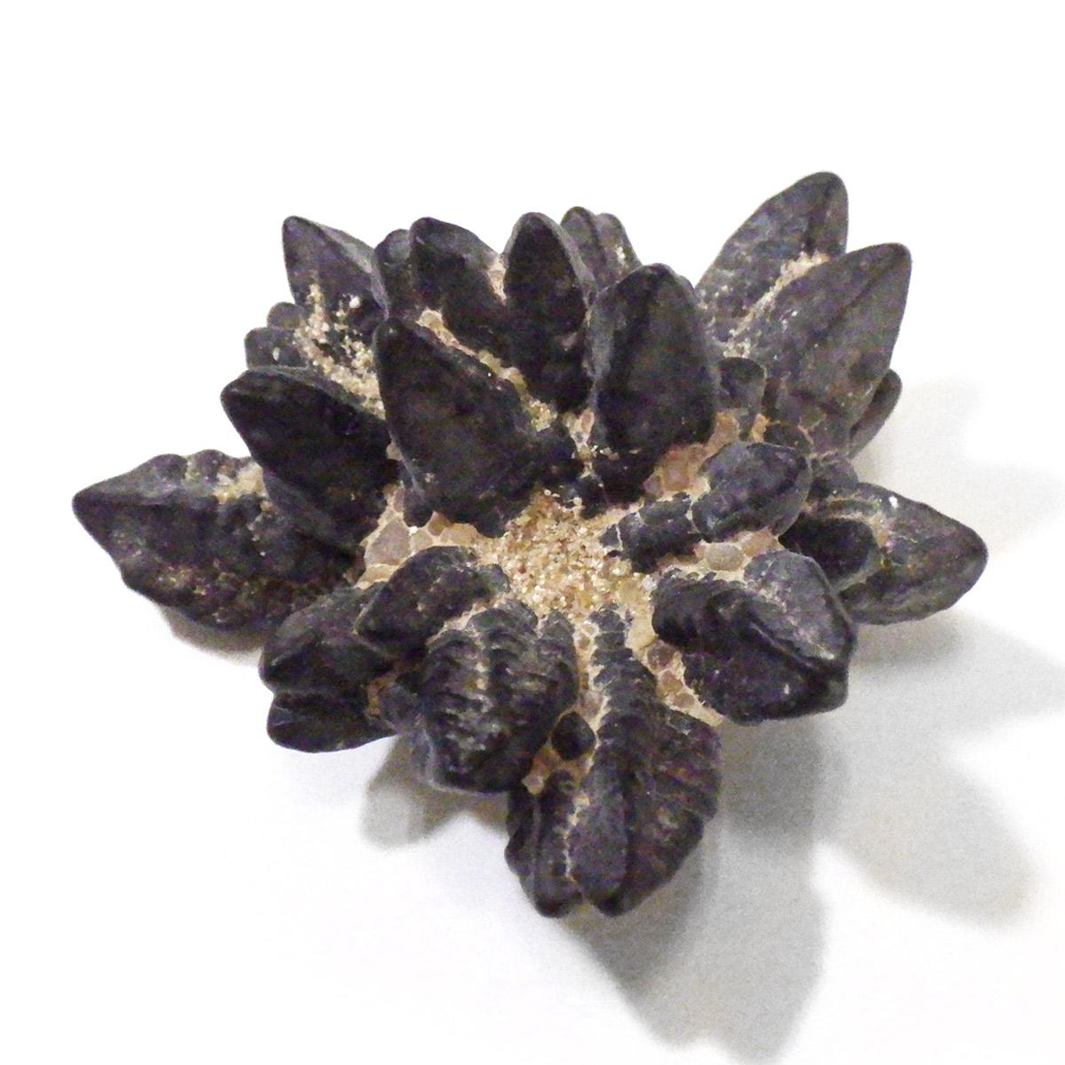 エジプトのサハラ砂漠の奥地から産出されたZストーンです。Zストーンは別名「エジプトの星」とも呼ばれています。Zストーンはマーカサイト(白鉄鉱)という鉱物が、長い時間をかけてゲーサイト(針鉄鉱)に変化した、マーカサイトの仮晶です。仮晶とは鉱物の結晶形が保たれたまま、中身が別の鉱物によって置き換わることで、本来はありえない形をとる現象のことです。Zストーンはアメリカで「ミネラル・マリファナ」とも呼ばれています。その理由はZストーンを持つと幸福感でいっぱいになり、ハイテンションな状態になるといわれているからです。