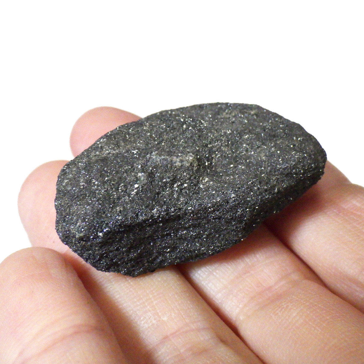 アメリカのミシガン州産のスペキュラーヘマタイト原石です。ヘマタイトは和名で赤鉄鉱。「スペキュラー」というのは、「反射鏡のような」という意味で表面で光を反射してキラキラと輝く効果です。ヘマタイト表面の細かな結晶に光が当たり、キラキラとラメのようにとてもきれいに輝きます。スペキュラーライト、鏡鉄鉱とも呼ばれます。