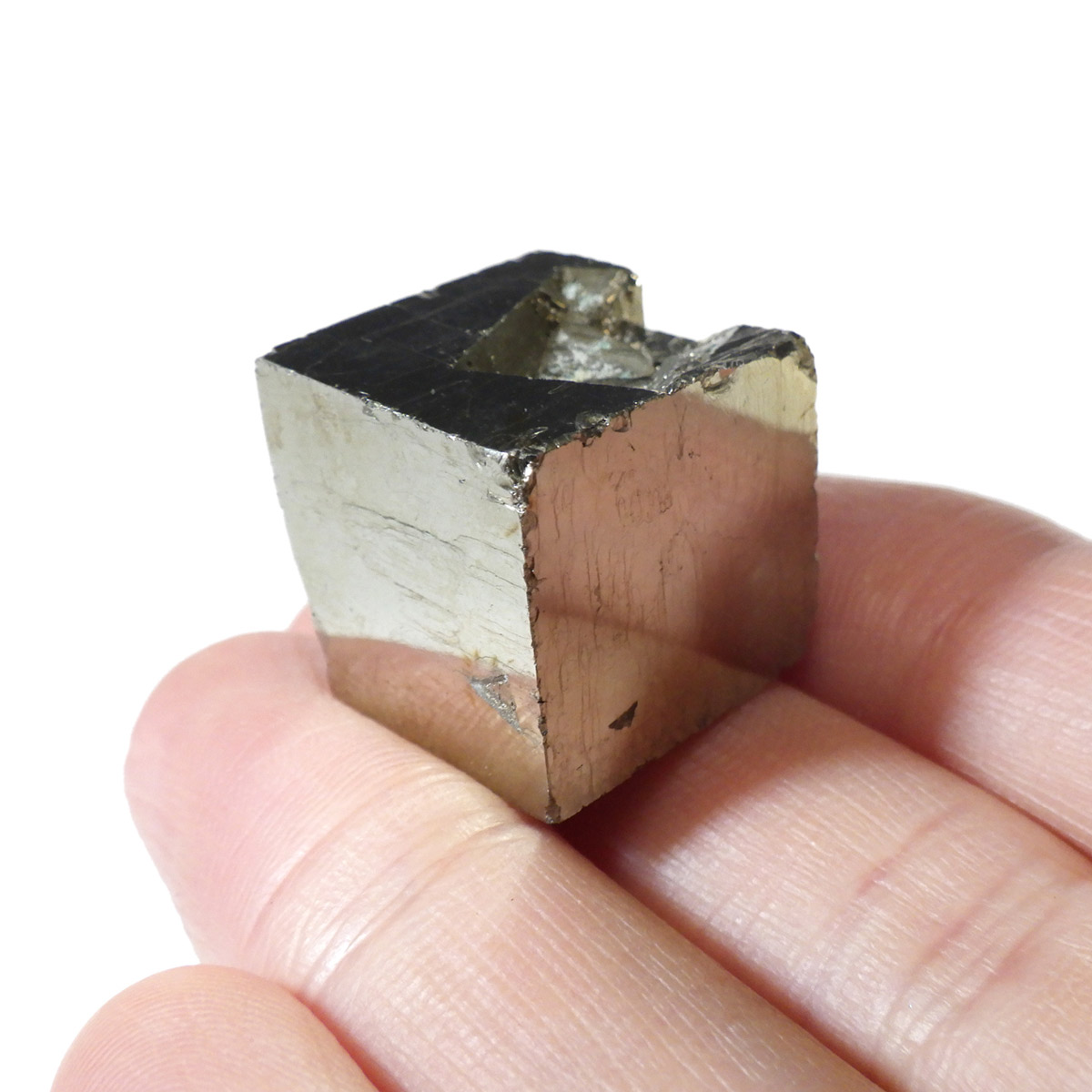 スペインの鉱山から採掘された、最高品質のパイライトキューブ原石です。パイライトは、火山活動の活発な場所で生成される、硫黄と鉄で構成された鉱物の一種です。結晶は大変整った六面体や八面体になっており、金と間違えるほどのゴールドです。 このパイライトキューブは3つの完全な立方体結晶で、晶癖が味わい深く大変魅力的です。