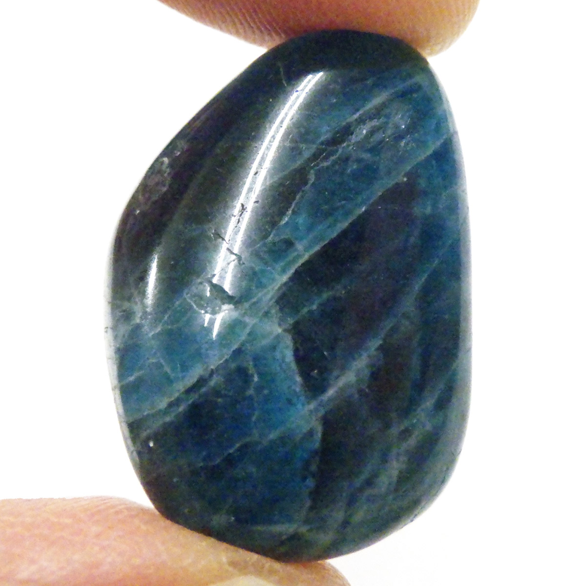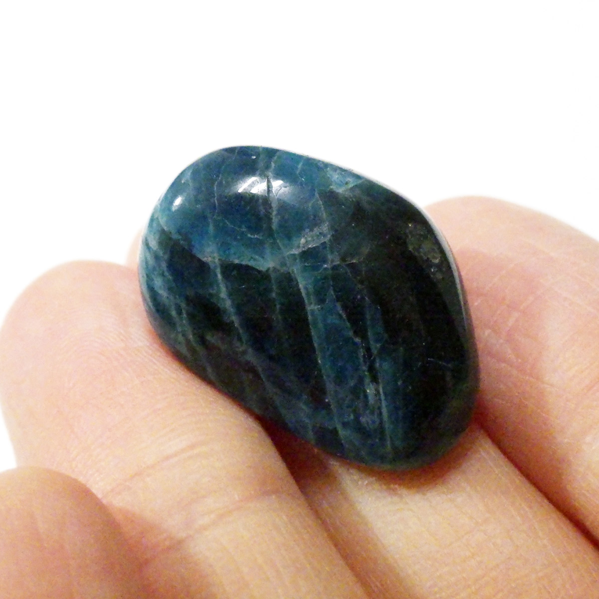 マダガスカル産のアパタイト、タンブルです。明るめで鮮やかなライトブルーが特徴で、自然界では珍しいビビットなカラーは、それだけで大変インパクトがあります。歯磨き粉などにも含まれるアパタイト、骨や歯にいいといわれています。何よりマイナスイオンの放出量の多さはトルマリンをはるかに凌ぎ、鉱物界No.1ともいわれています。