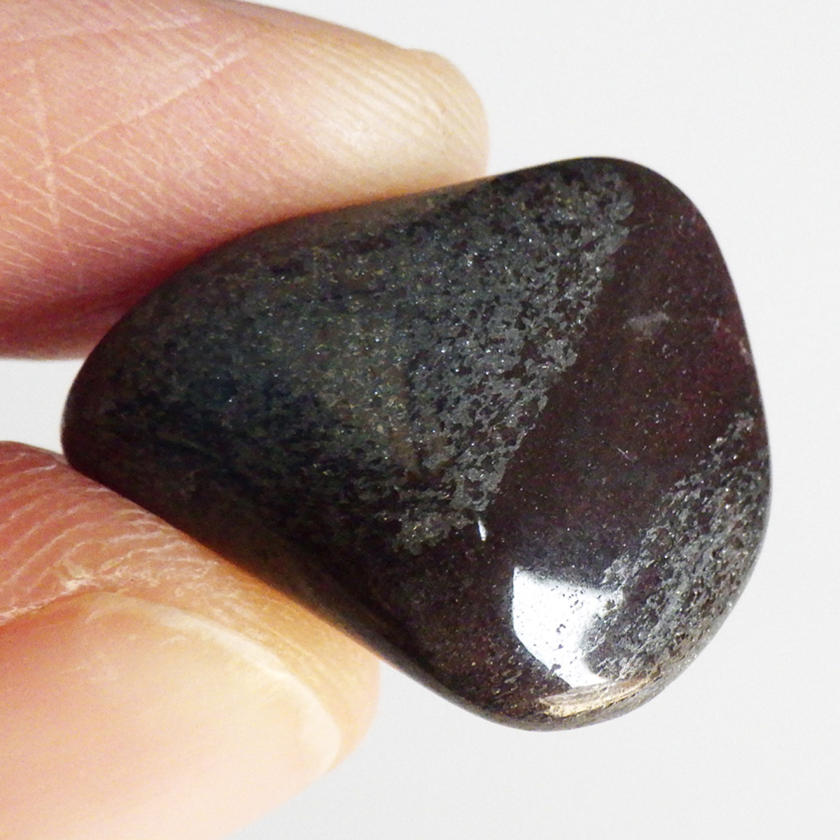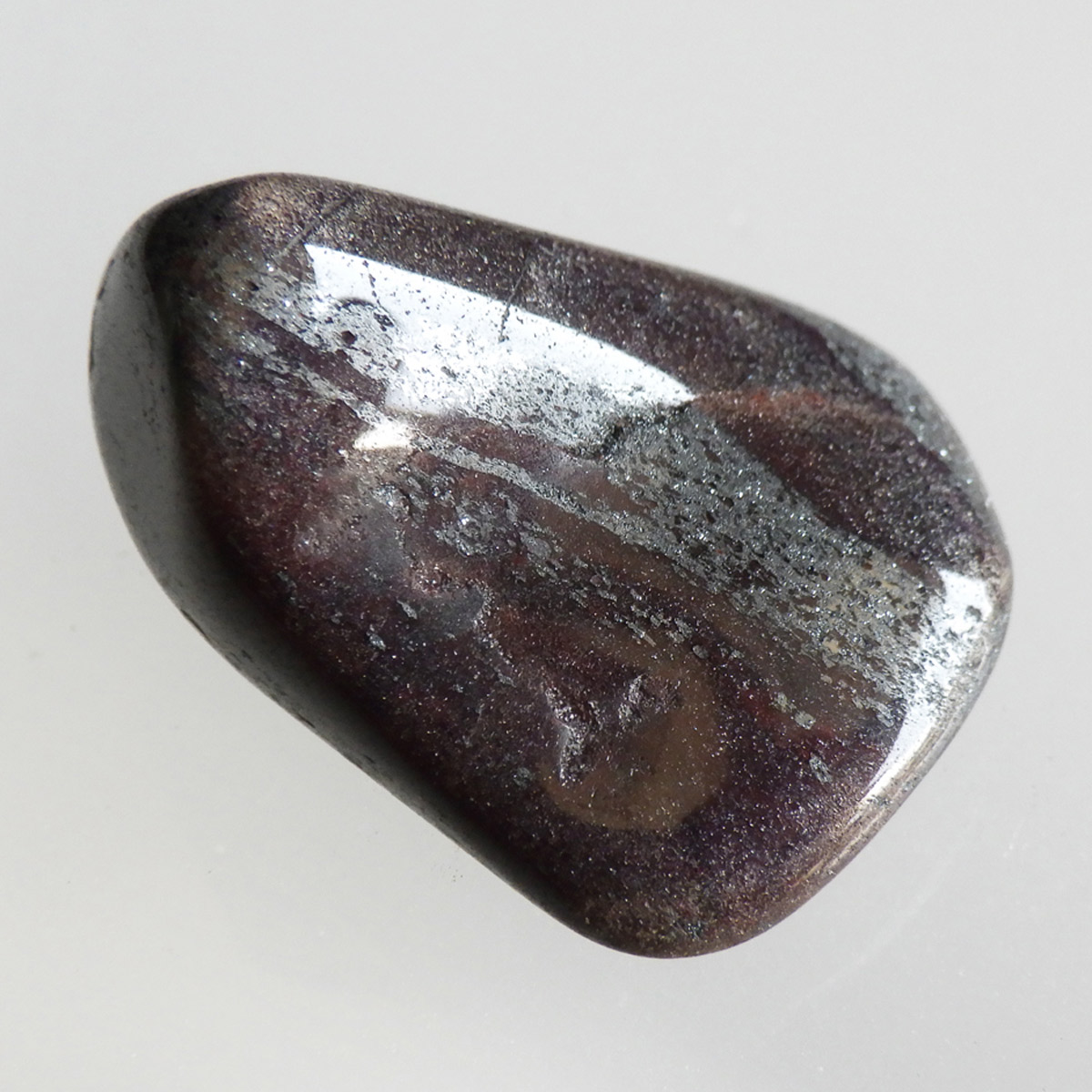 アメリカ・ミシガン州からカナダのオンタリオ州にかけて五大湖地域の縞状鉄鉱層から産出するヘマタイトレッドジャスパーのタンブルです。レッドジャスパーの赤は元々ヘマタイト(赤鉄鉱)によるものです。五大湖の周辺では粒状鉄鉱層といわれており、スペキュラーヘマタイトのようにキラキラとしたヘマタイトが産出します。27億年前の地層の石ということでアンセストラライト(祖先石)という愛称でも呼ばれております。クリムゾンレッドとシルバーの縞模様が面白く、キラキラとしたヘマタイトも魅力的です。