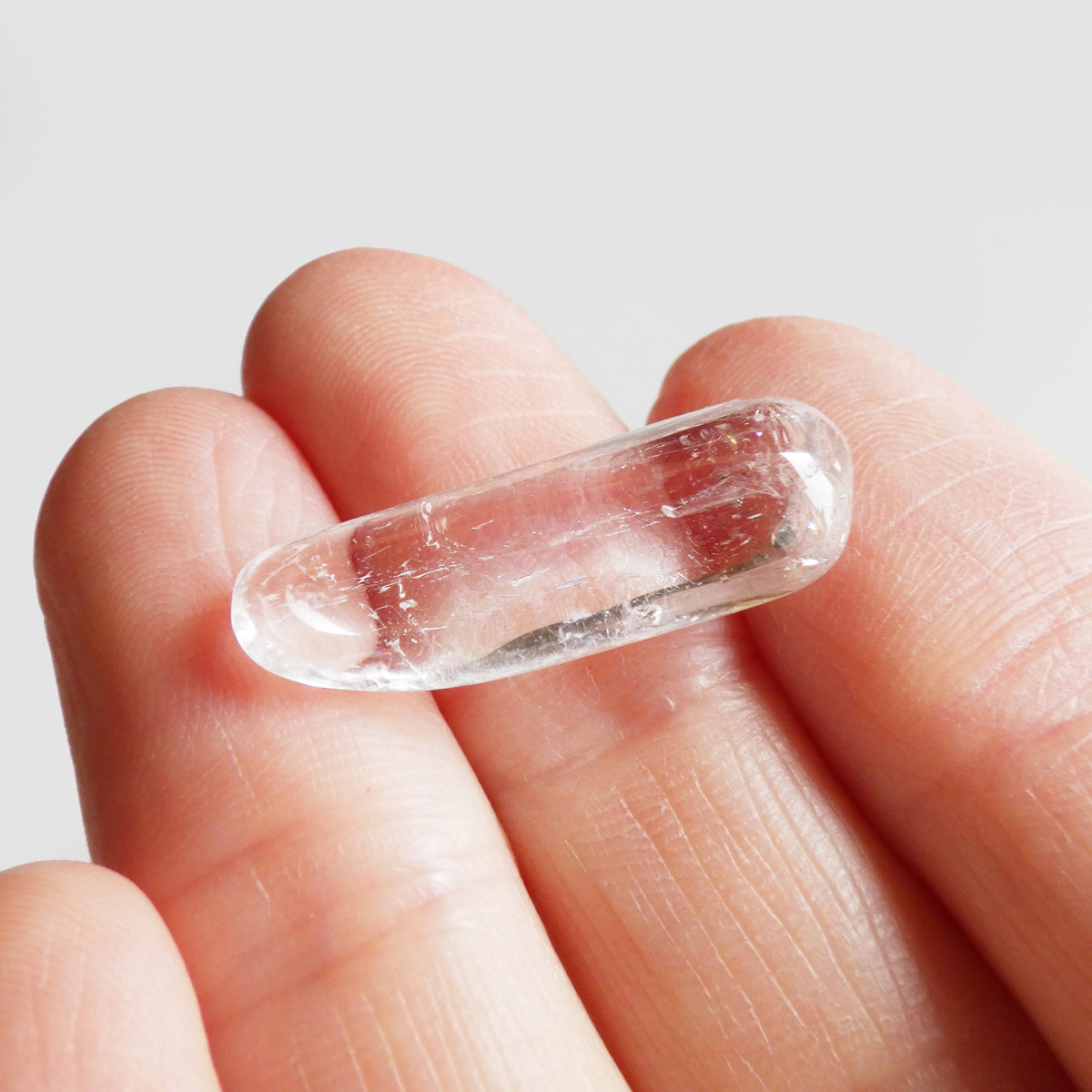 メキシコ産、ダンビュライトのタンブルです。 ダンビュライトはダイヤモンドの代用品として使われることもある石で、結晶の形はトパーズそっくりです。透明度と輝きは美しいの一言。レインボーも含まれ、基本的に透明ですが、僅かにほんのりとピンク色をしています。小さいながらも、心を奪われる魅力的なタンブルです。