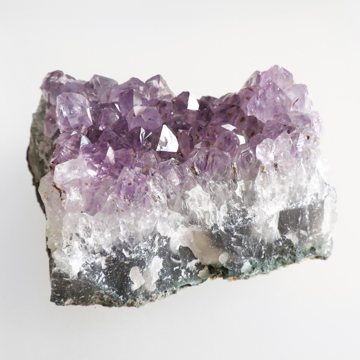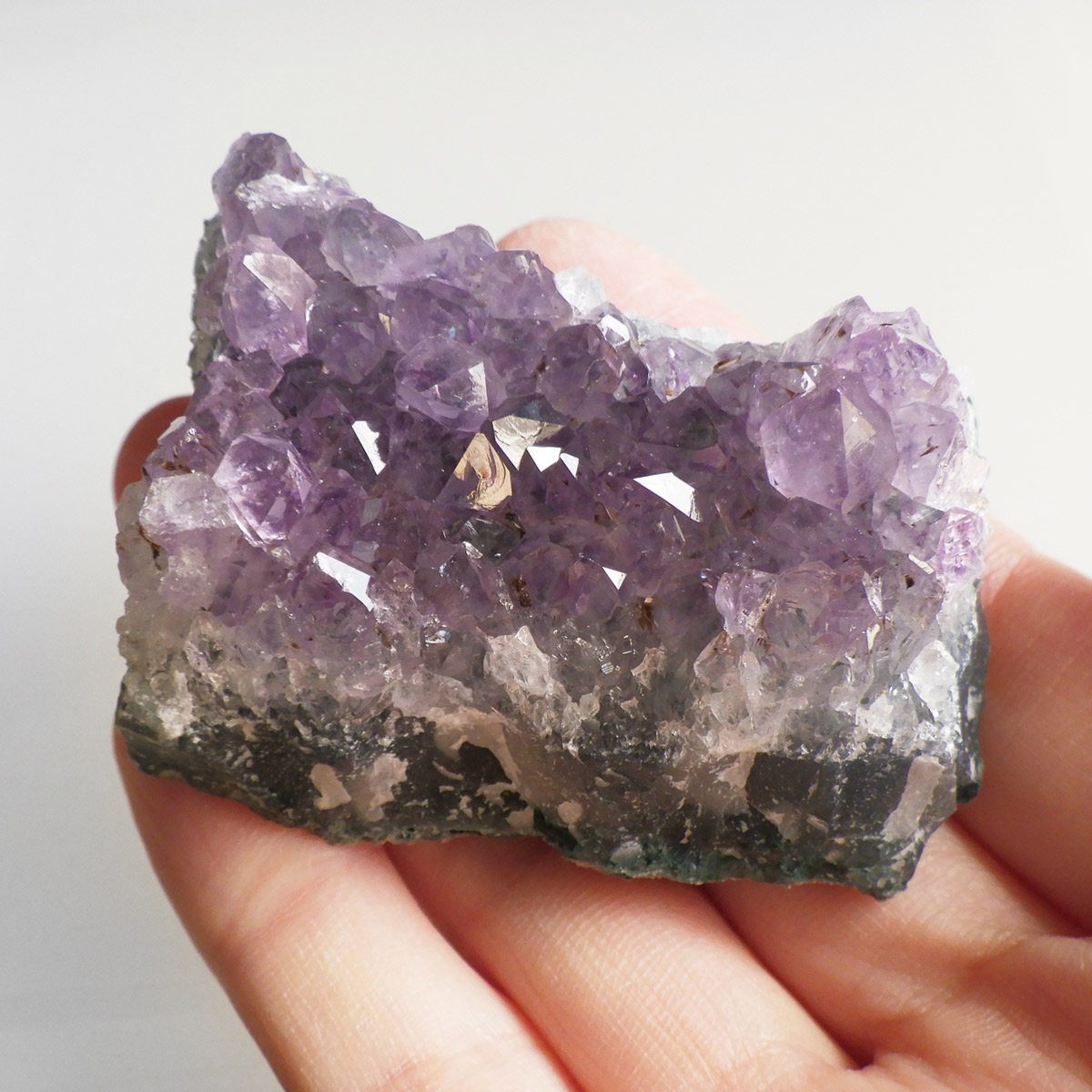 ブラジル産のアメジストクラスターです。クラスターとしては小ぶりですが、透明感のある優しい紫で、グラデーションやレインボーを楽しむ事が出来ます。 ちょこんと机の上などにも置いていただけるちょうど良い大きさだと思います。