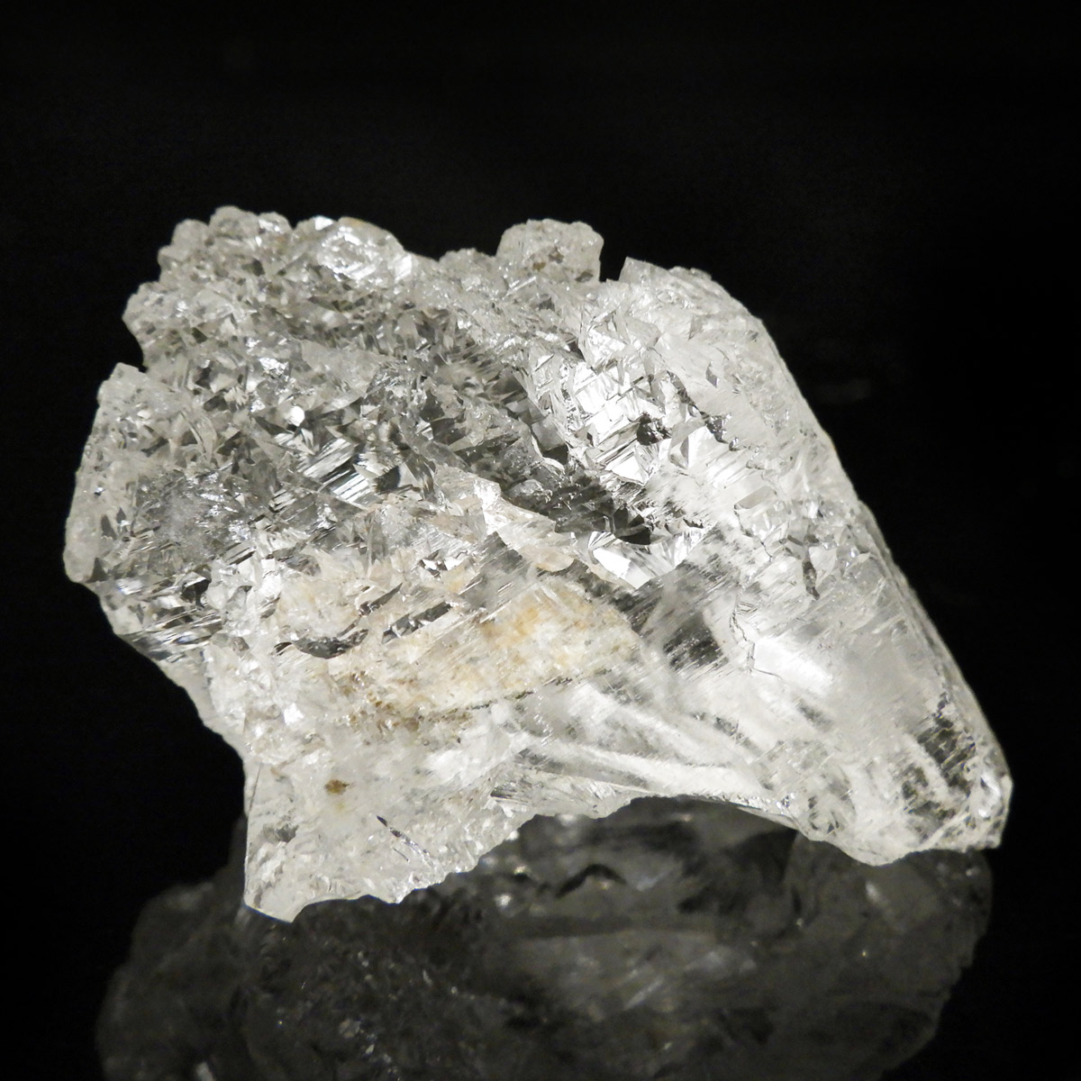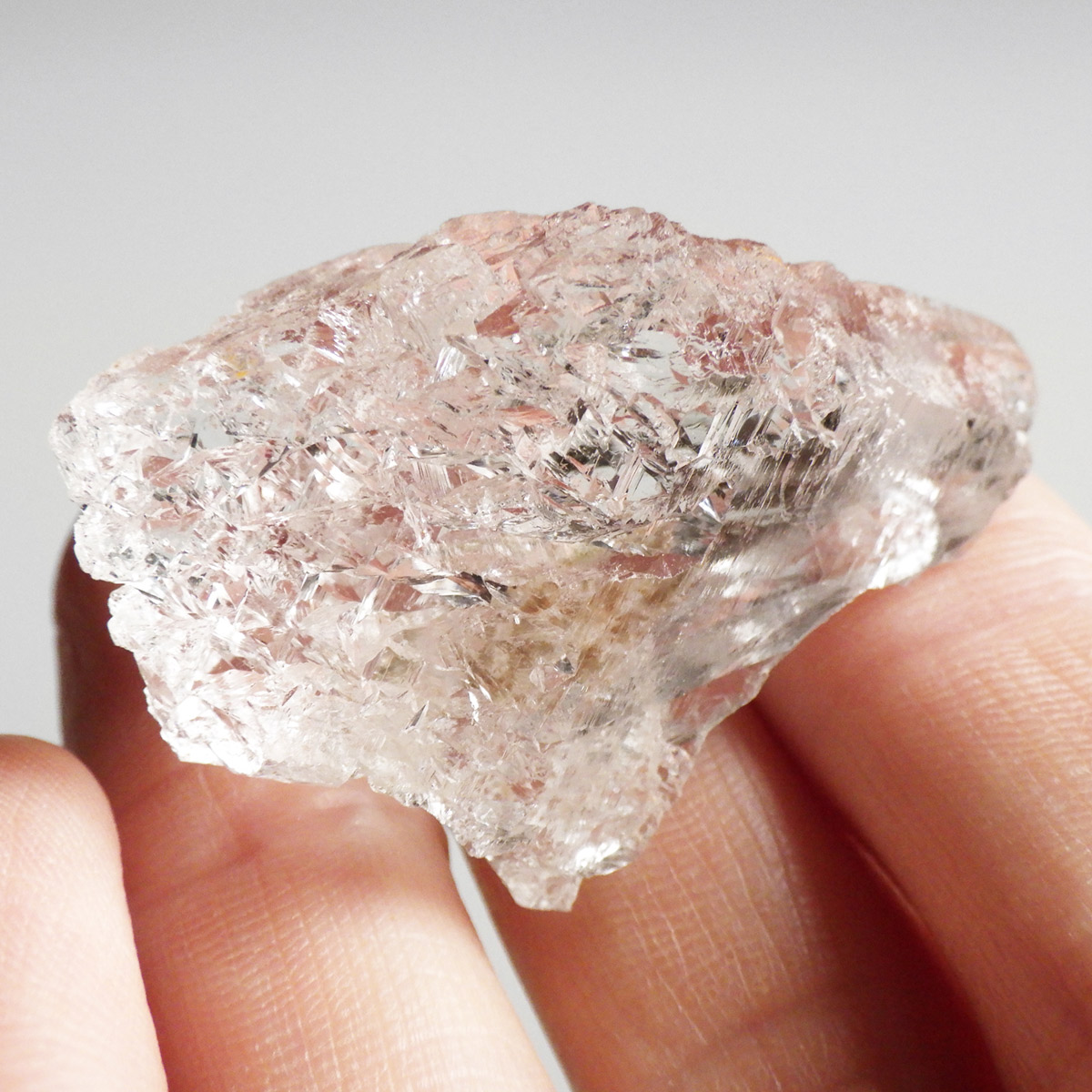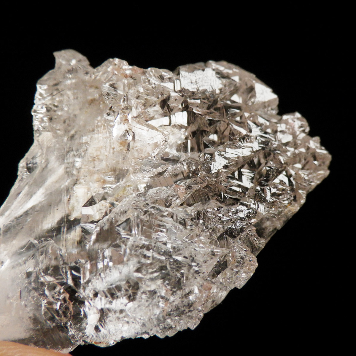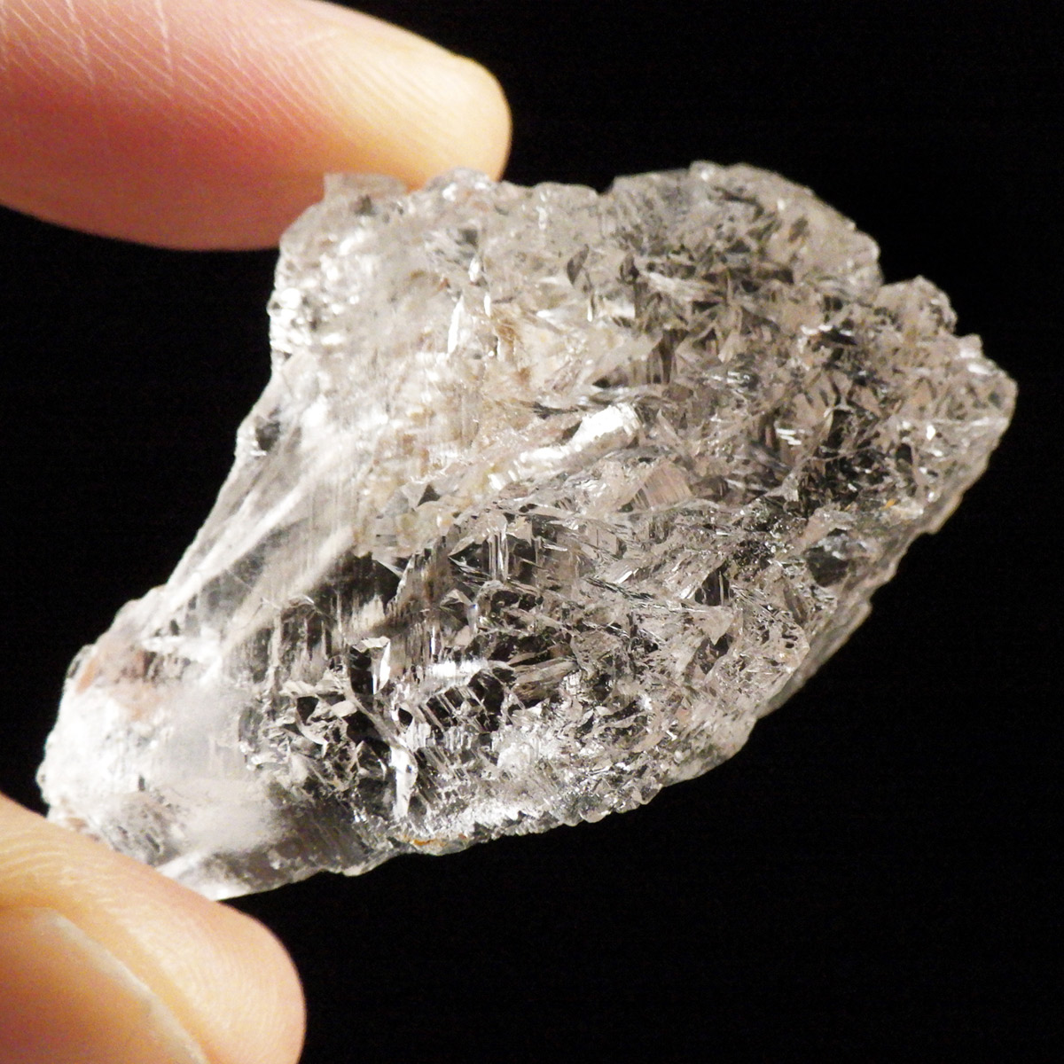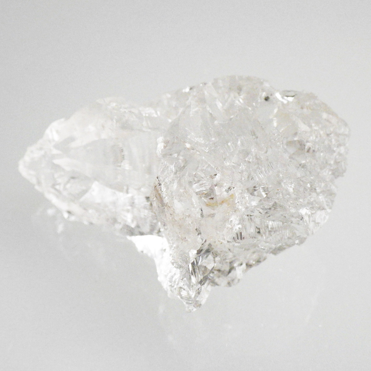 パキスタン北部ギルギット・バルティスタン州にあるスカルドゥ産のアイスクォーツです。スカルドゥはヒマラヤ山脈の西端に位置する標高2500m級の町で世界第2位の標高8611メートルを誇るK2登山の拠点となる町でもあります。温暖化の影響で氷河が溶けて現れたインドのアイスクリスタルとは本来は区別しています。透明度抜群で 非常にピュアな水晶クリスタルです。アイスクォーツは熱水にさらされて結晶表面が溶かされた蝕像水晶(エッチドクォーツ)です。まるで氷のような姿をしています。透明感も美しいのですが、蝕像水晶は自然が作り出した表面の模様が面白く刻まれています。透明度を保った美しい蝕像結晶というところがこの産地ならではで、奇跡的なクリスタルです。