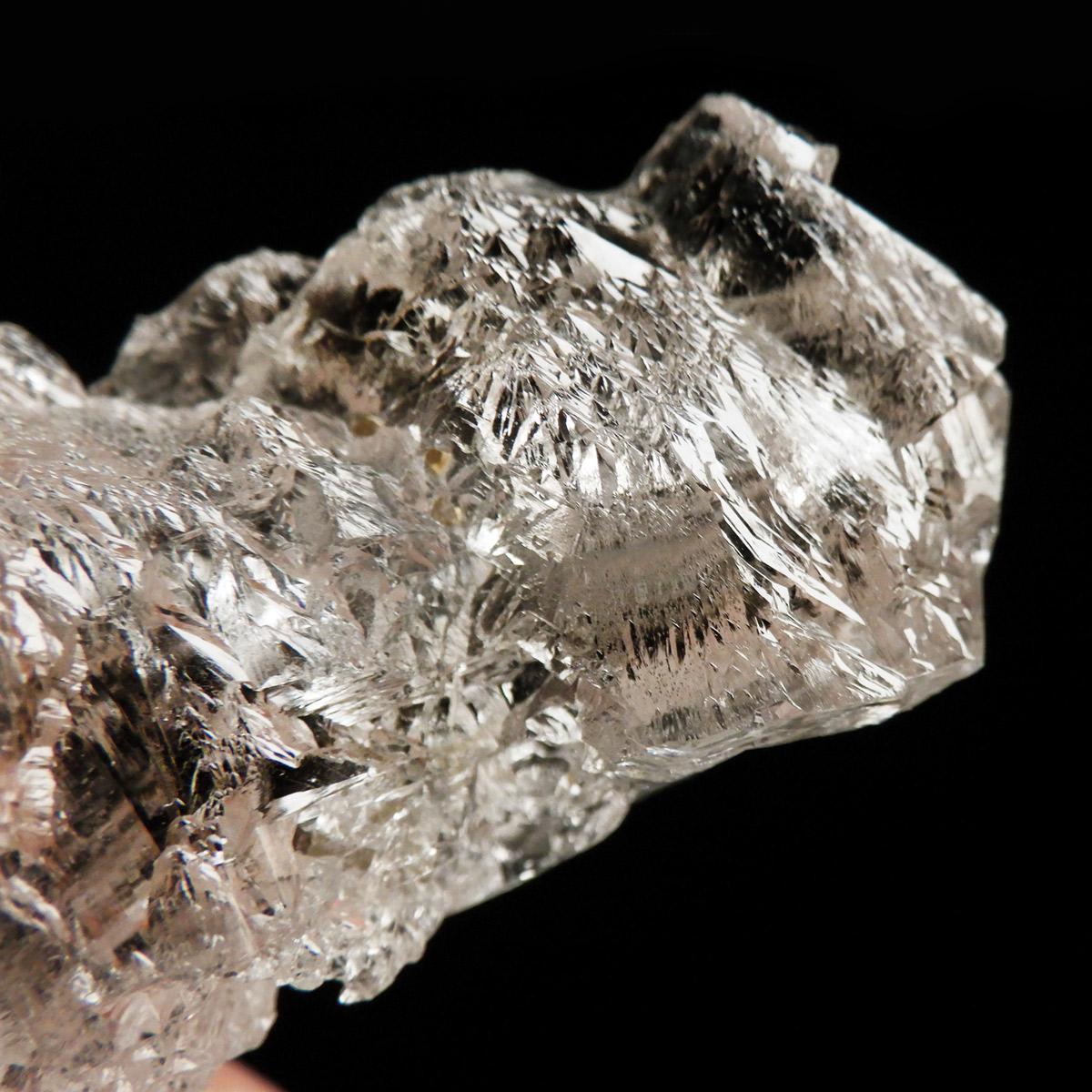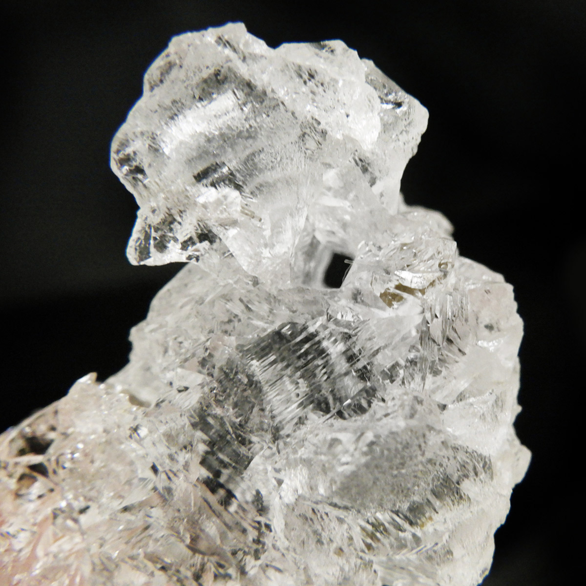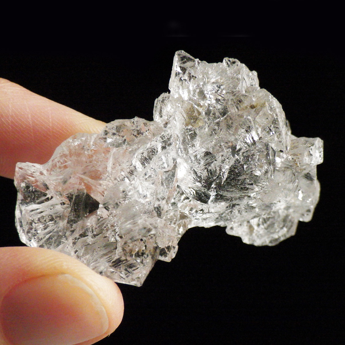 パキスタン北部ギルギット・バルティスタン州にあるスカルドゥ産のアイスクォーツです。スカルドゥはヒマラヤ山脈の西端に位置する標高2500m級の町で世界第2位の標高8611メートルを誇るK2登山の拠点となる町でもあります。温暖化の影響で氷河が溶けて現れたインドのアイスクリスタルとは本来は区別しています。透明度抜群で 非常にピュアな水晶クリスタルです。アイスクォーツは熱水にさらされて結晶表面が溶かされた蝕像水晶(エッチドクォーツ)です。まるで氷のような姿をしています。透明感も美しいのですが、蝕像水晶は自然が作り出した表面の模様が面白く刻まれています。また、こちらの結晶はグリーンのエピドートが共生しています。透明度を保った美しい蝕像結晶というところがこの産地ならではで、奇跡的なクリスタルです。
