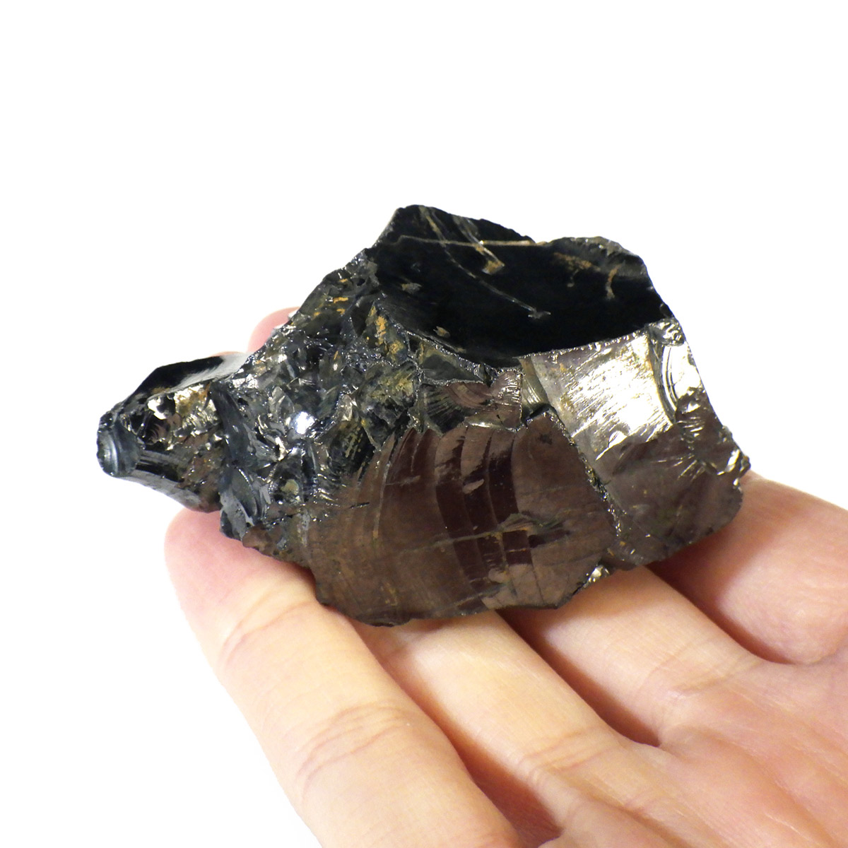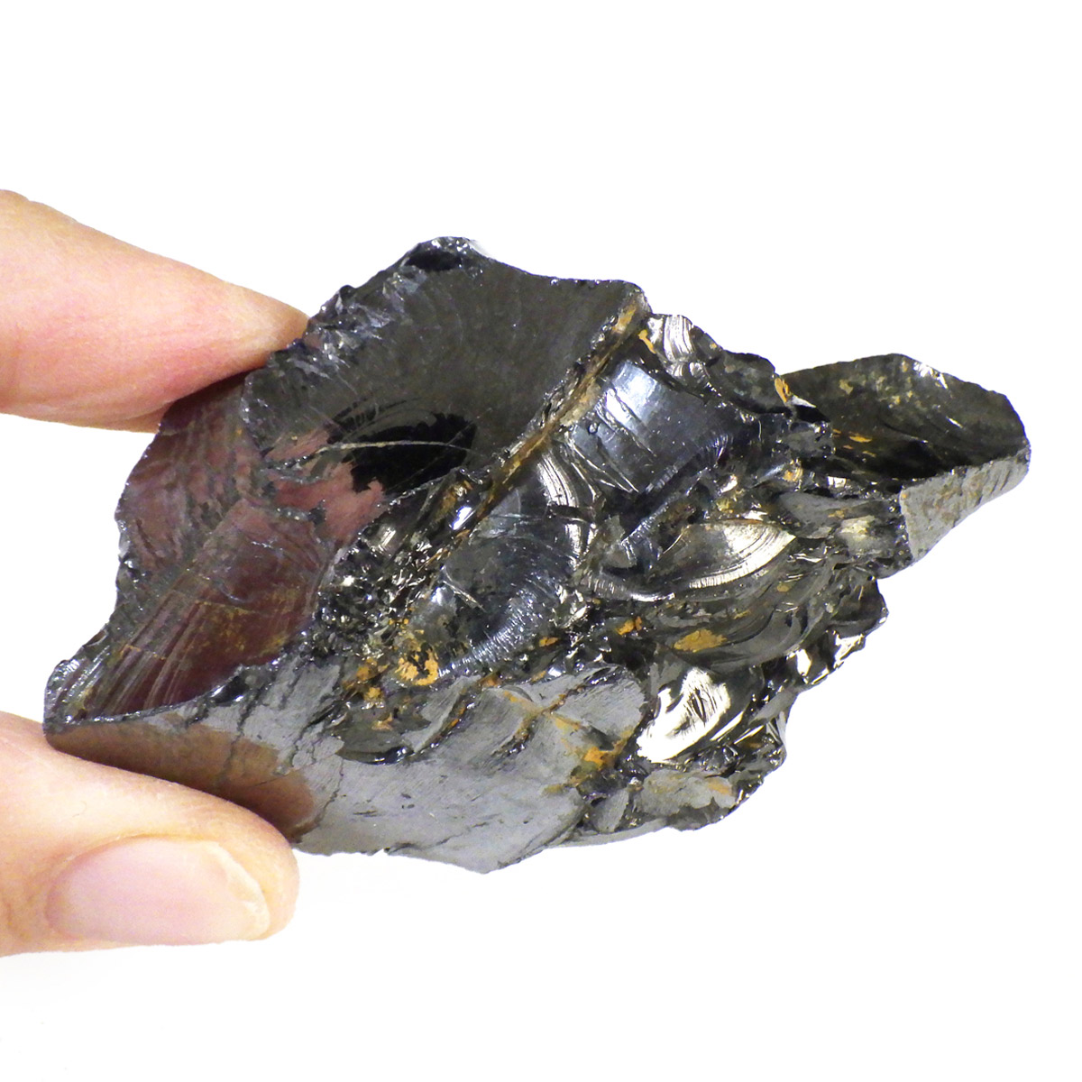 ロシアのカレリア共和国から産出されたエリートシュンガイト原石です。通常のシュンガイトはマットな質感ですが、エリートシュンガイトの研磨なしでのこの光沢は見事です。シュンガイトの中でも、特に炭素の純度が高く、光沢の強いものを「エリートシュンガイト」と呼びます。