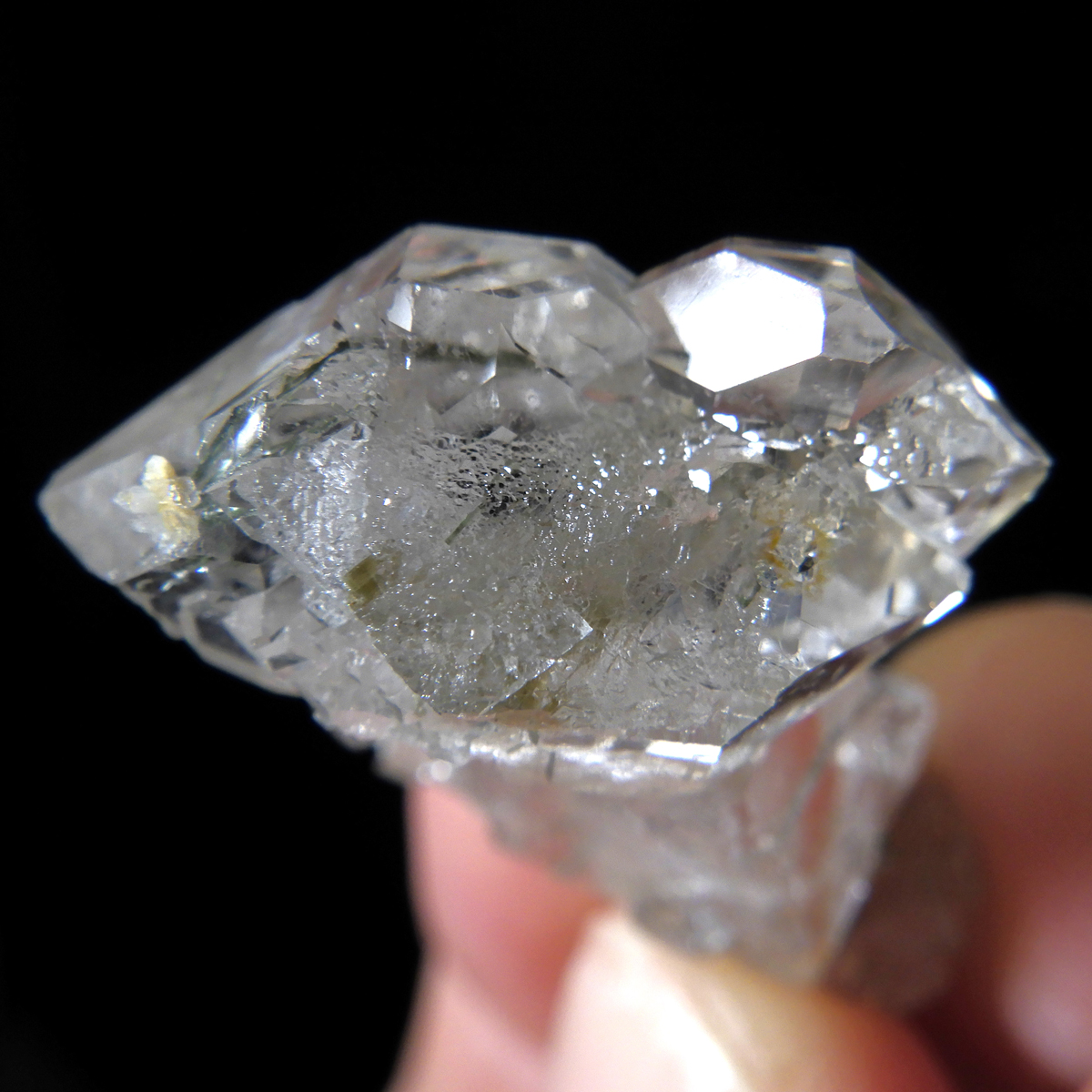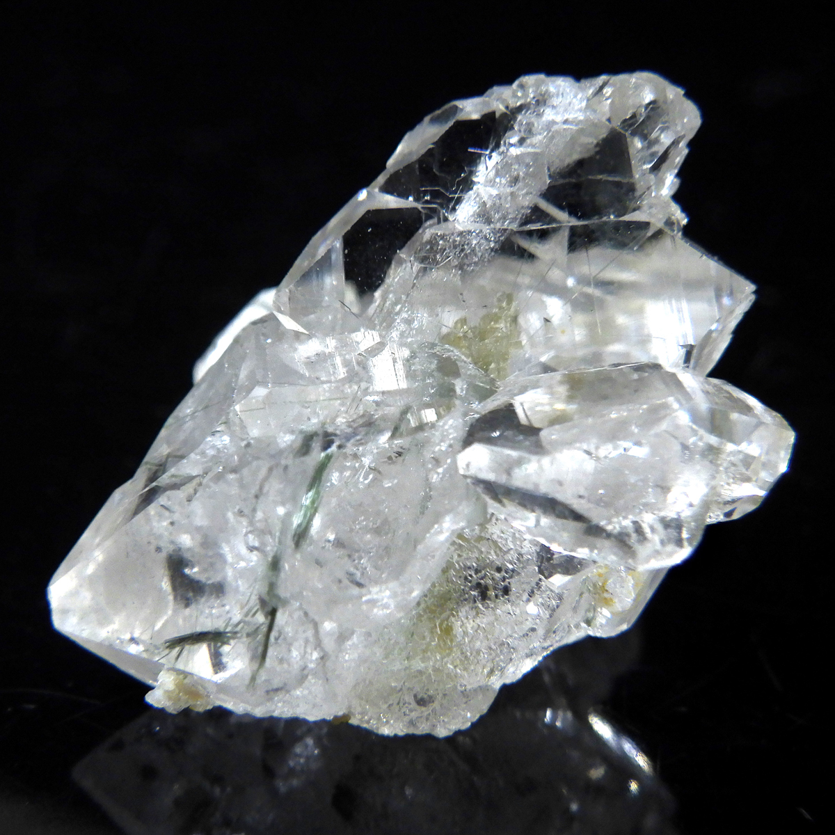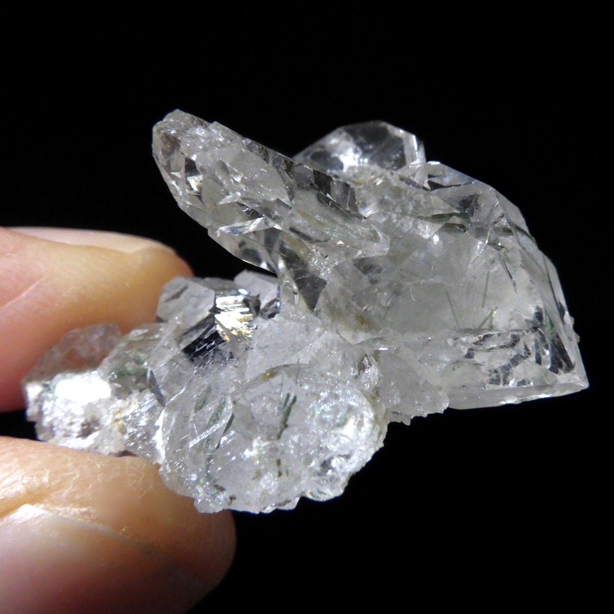 アクチノライト(緑閃石)が内包されています。 ヨーロッパを代表するアルプス山脈は、フランス・スイス・ドイツ・イタリア・オーストリアの広大な国々をまたぐ、東西1000km、南北150kmにも及ぶ大山脈。 そのアルプスの中でも最高峰のモンブラン(標高4810m)で採掘された水晶です。 モンブランはフランス・イタリア国境にそびえ、美しい水晶の産地としても知られており、その地の名を冠して「モンブラン水晶」と呼ばれています。 このモンブラン水晶は、標高が高いことから機械を持ち込むことが出来ないため、登山家により一つ一つ手掘りで採掘されます。 そのため、大変流通量の少ない、稀少な水晶です。 モンブラン水晶は、驚くほどの高い透明度と、エッジが立った結晶形の美しさが目を惹きます。 何より表面の艶やかさは原石とは思えないほどで、まるで研磨したかのように輝く様子は、まさに宝石のようです。