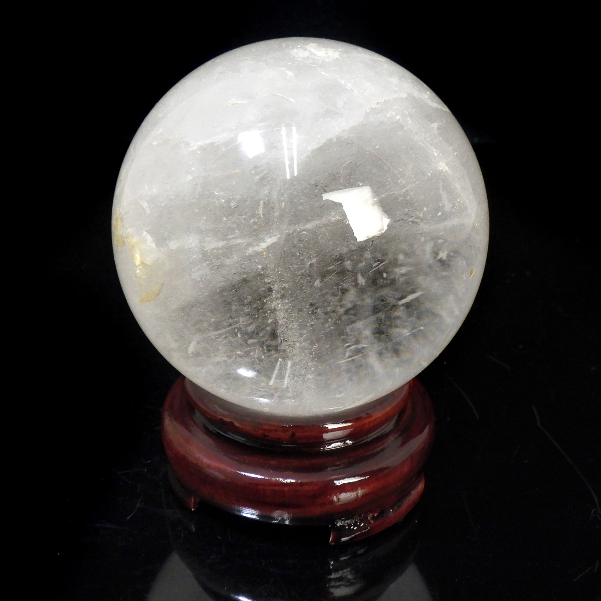 水晶球 直径70mm 丸玉 スフィア ブラジル産 木製台付き