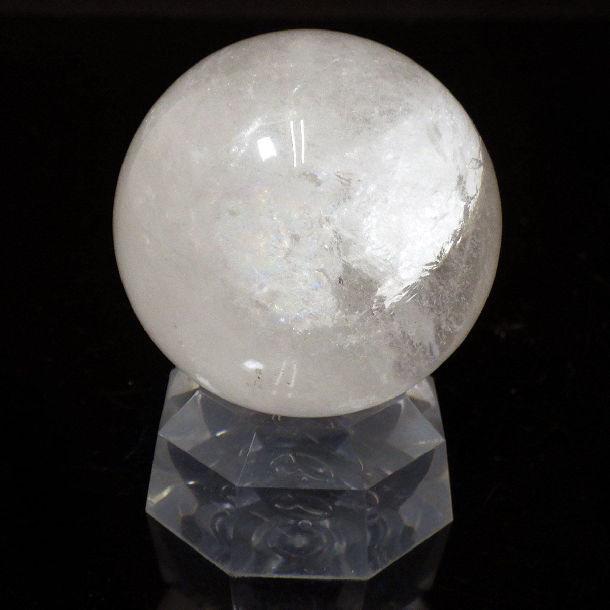 ブラジル産の天然水晶球です。 白く優しい色合いで、中にはレインボーが確認できます。