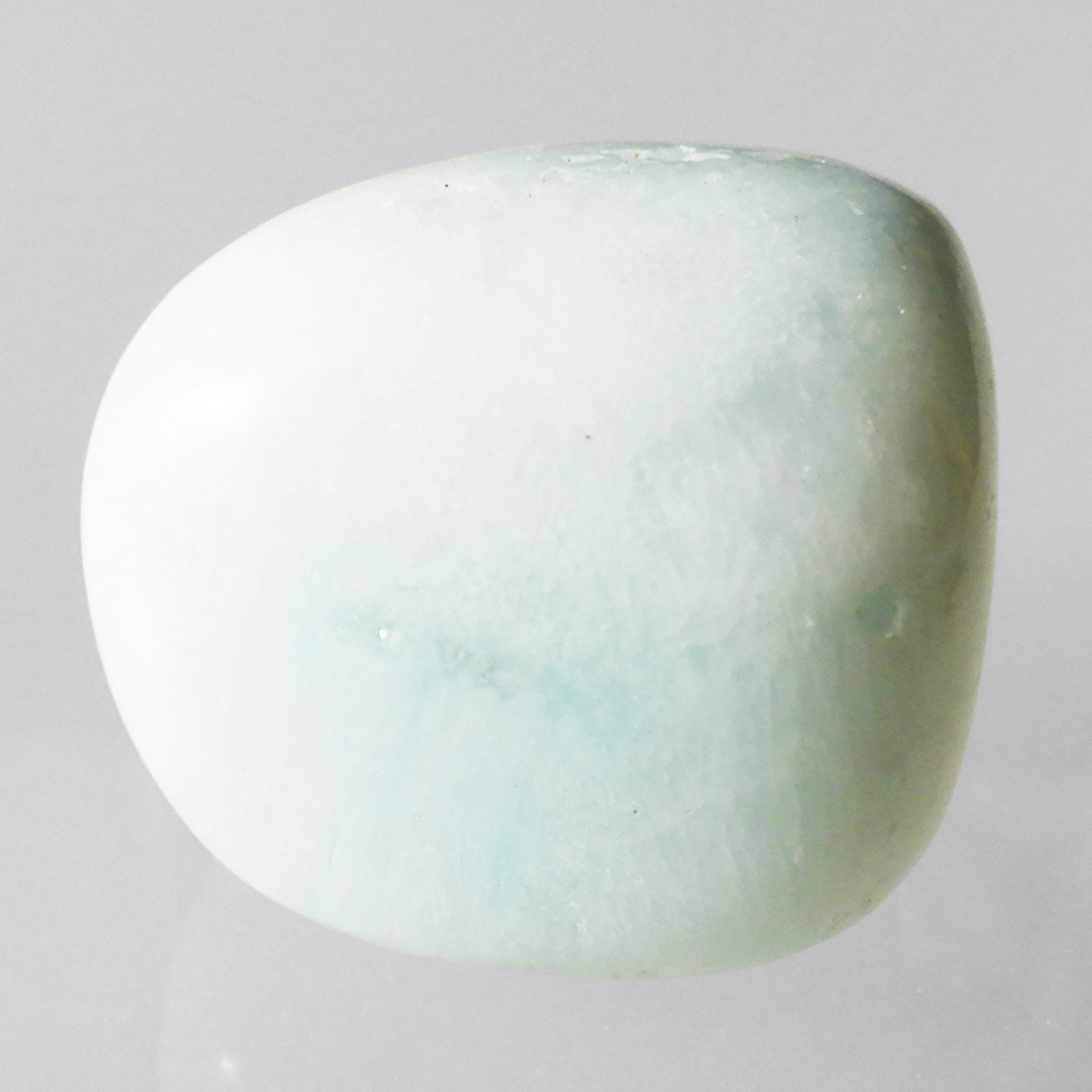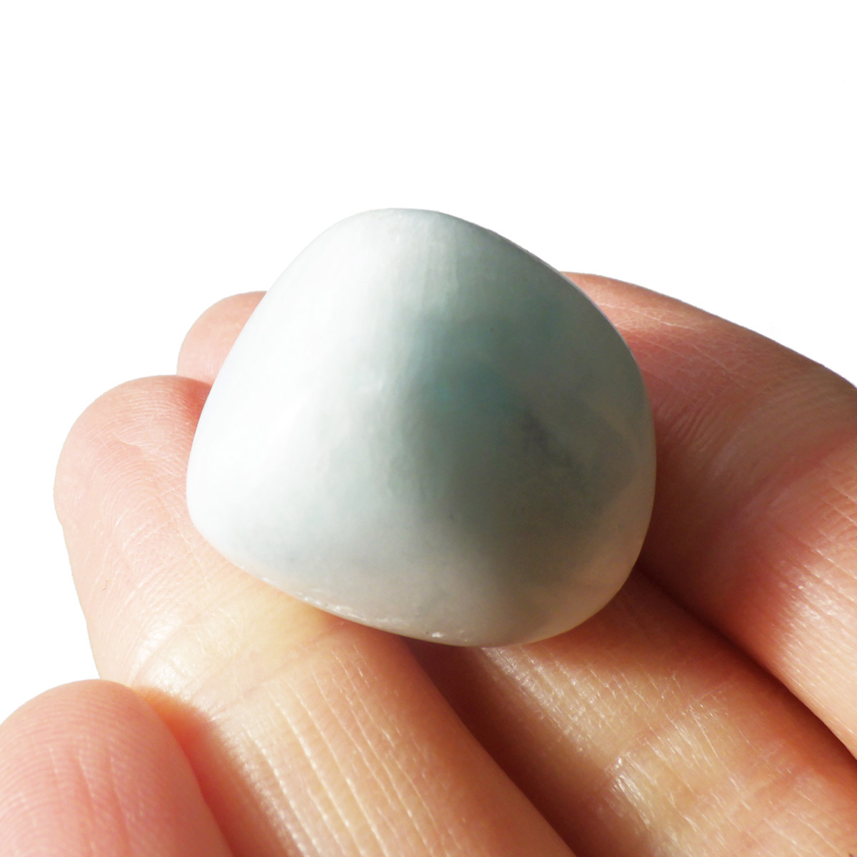 チャイナ産のブルーアラゴナイト、タンブルです。アラゴナイトといえば、黄色が主流ですが、青色のブルーアラゴナイトは流通量が少なくレアな石とされています。