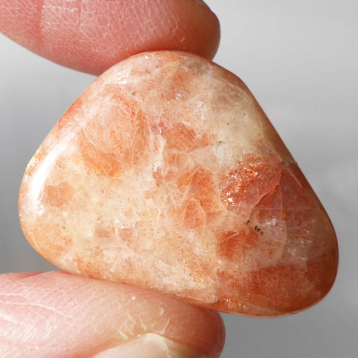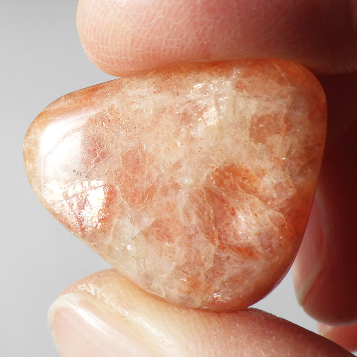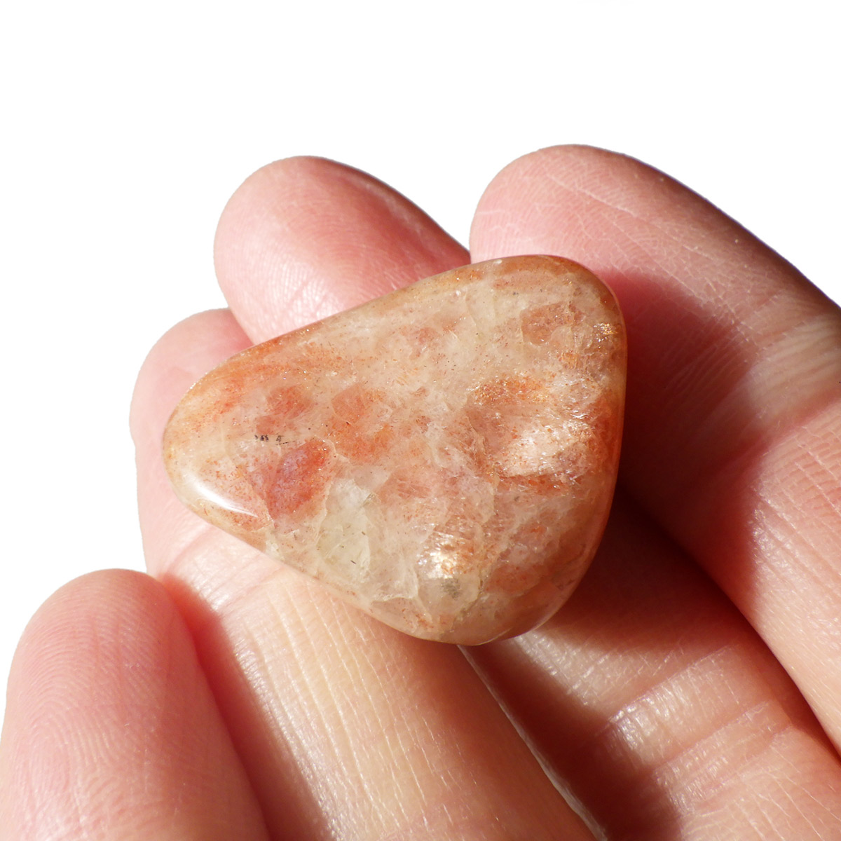 サンストーンは、自信の無い人やコンプレックスの強い人に対して、冷えた心を太陽の光が温めてくれるように、自信を取り戻す事ができます。安心感・自己肯定感を与えてくれ、苛立ちや感情の起伏を抑えてコンプレックスや心の傷が癒してくれます。 そして、心に余裕をつくり、さらに人生に対する創造性を高め、前向きに人生を楽しむ事を教えてくれます。 精神的に自分を追い詰めやすいタイプの人にとっては、ストレスが緩和されるといわれています。