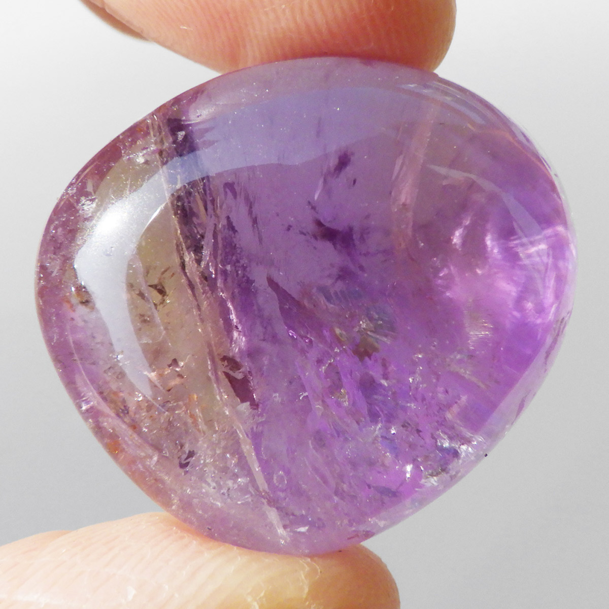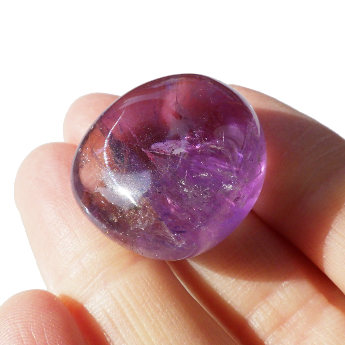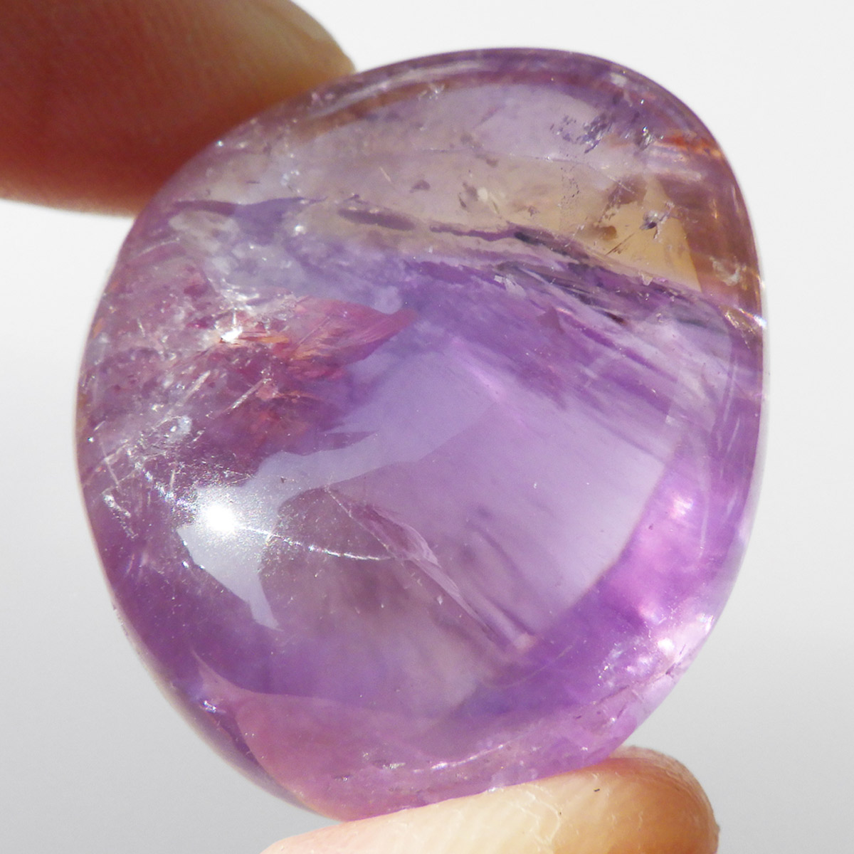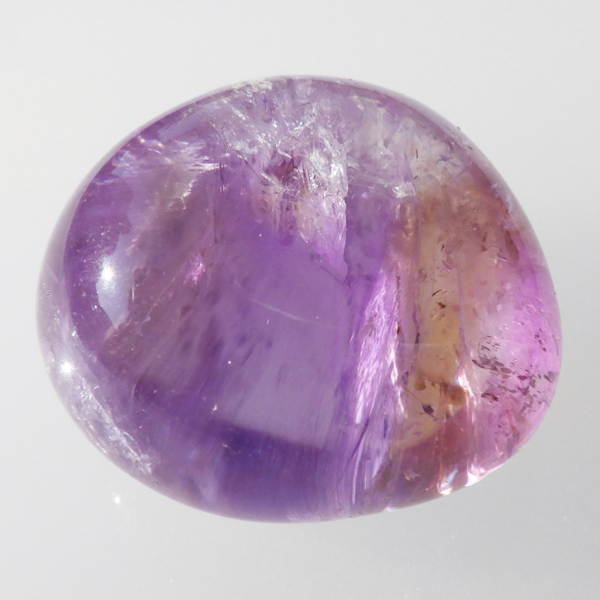 高品質ボリビア産アメトリンのタンブルです。アメトリンはアメジストとシトリンが混ざり合った石です。天然のアメトリンは極々限定された条件下でしか生成されません。透明度も抜群で、濃いアメジストとシトリンのカラーが大変美しいです。水晶の透明部分も見られ、透明〜パープル〜イエロー〜へのグラデーションは、まさに息を飲むほど美しいです。また、アメトリンを照らす光の種類や、タンブルの角度によって、濃く見えたり薄く見えたり、青っぽく見えたり赤っぽく見えたり、見ていて飽きることがありません。アメジストとシトリンの二つの顔を併せ持った魅力的な水晶です。
