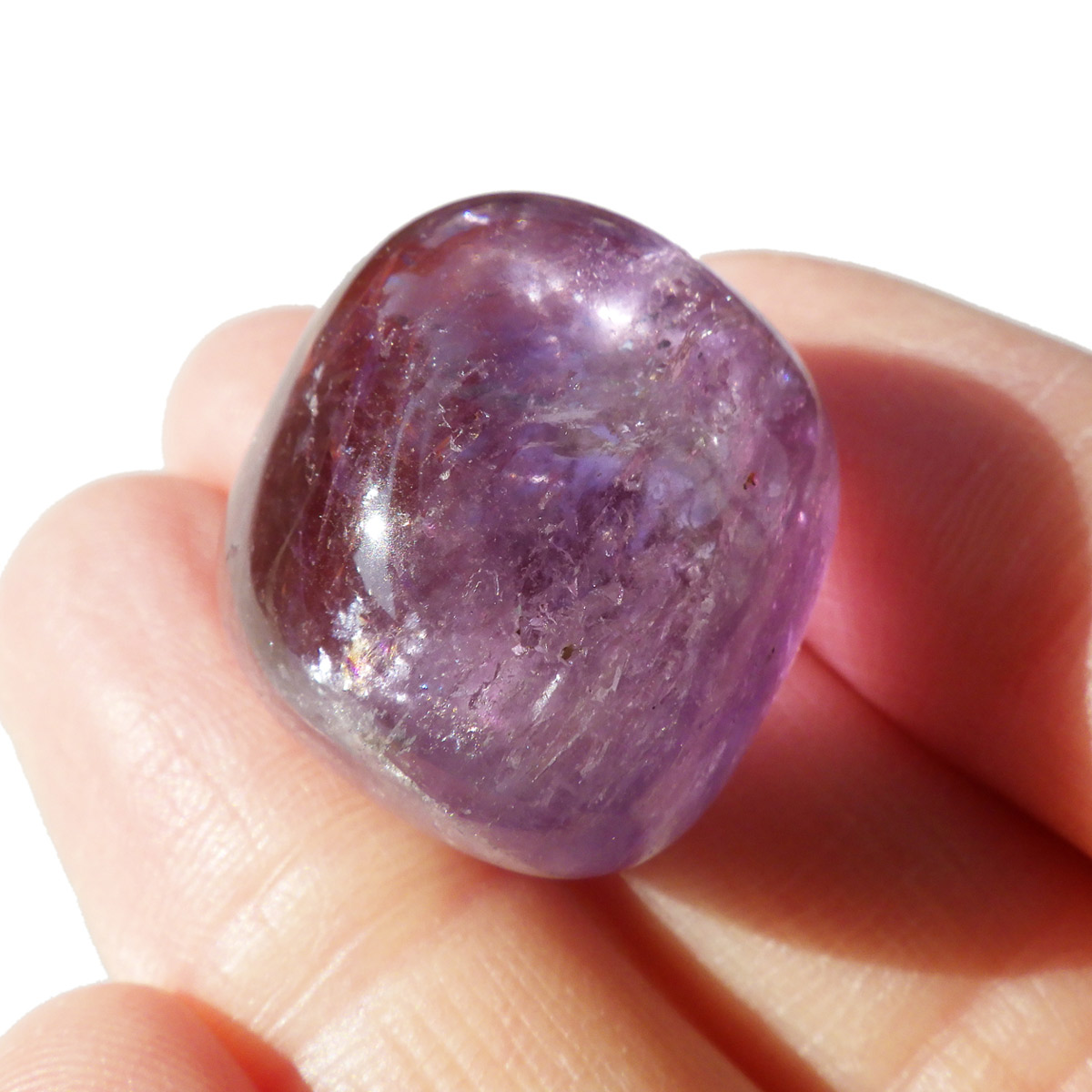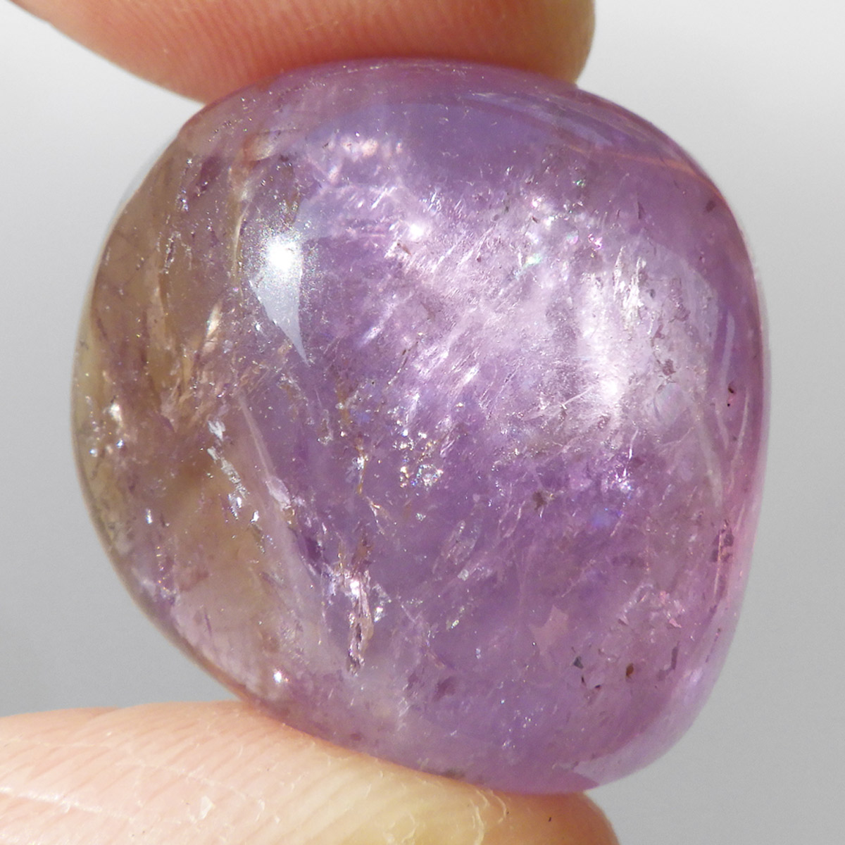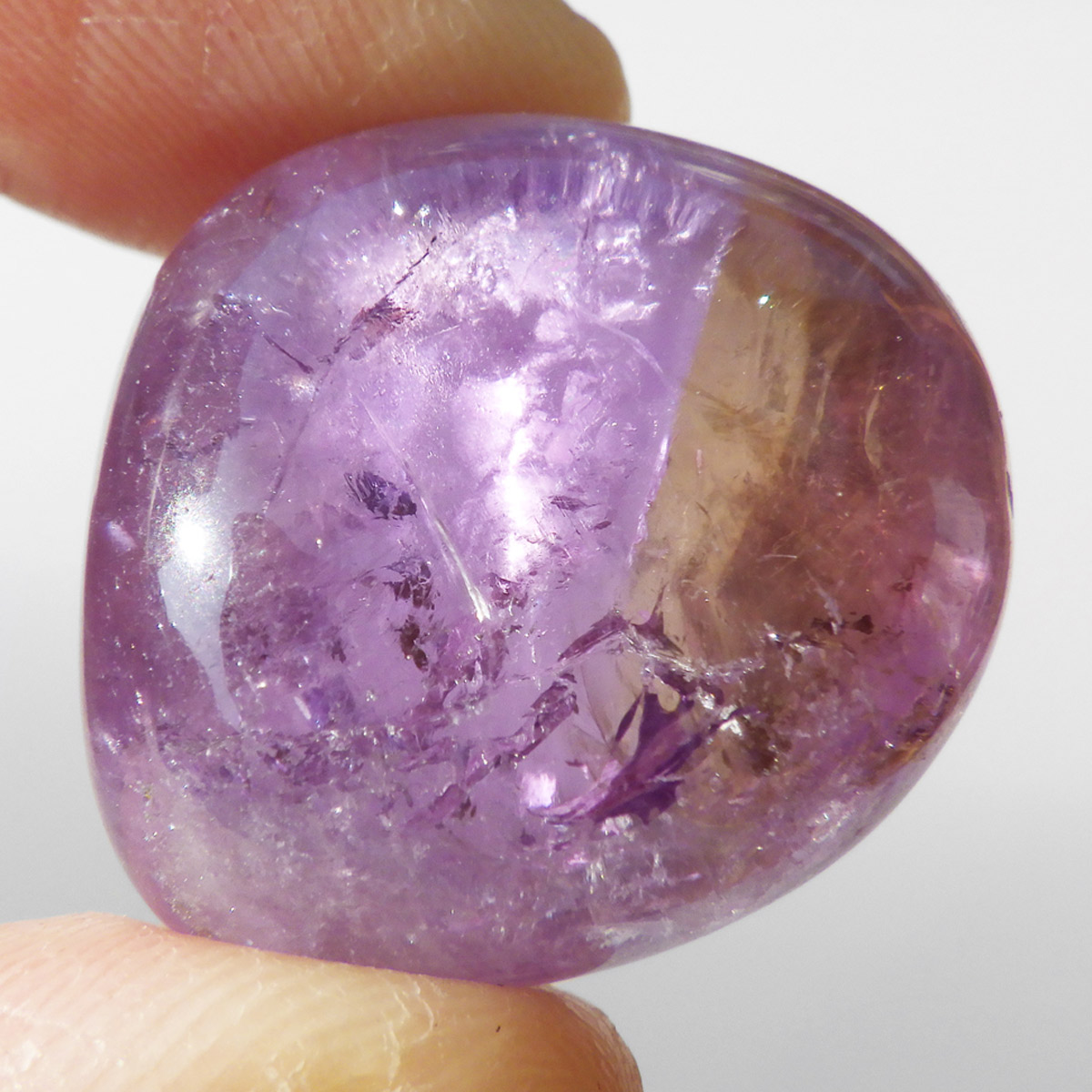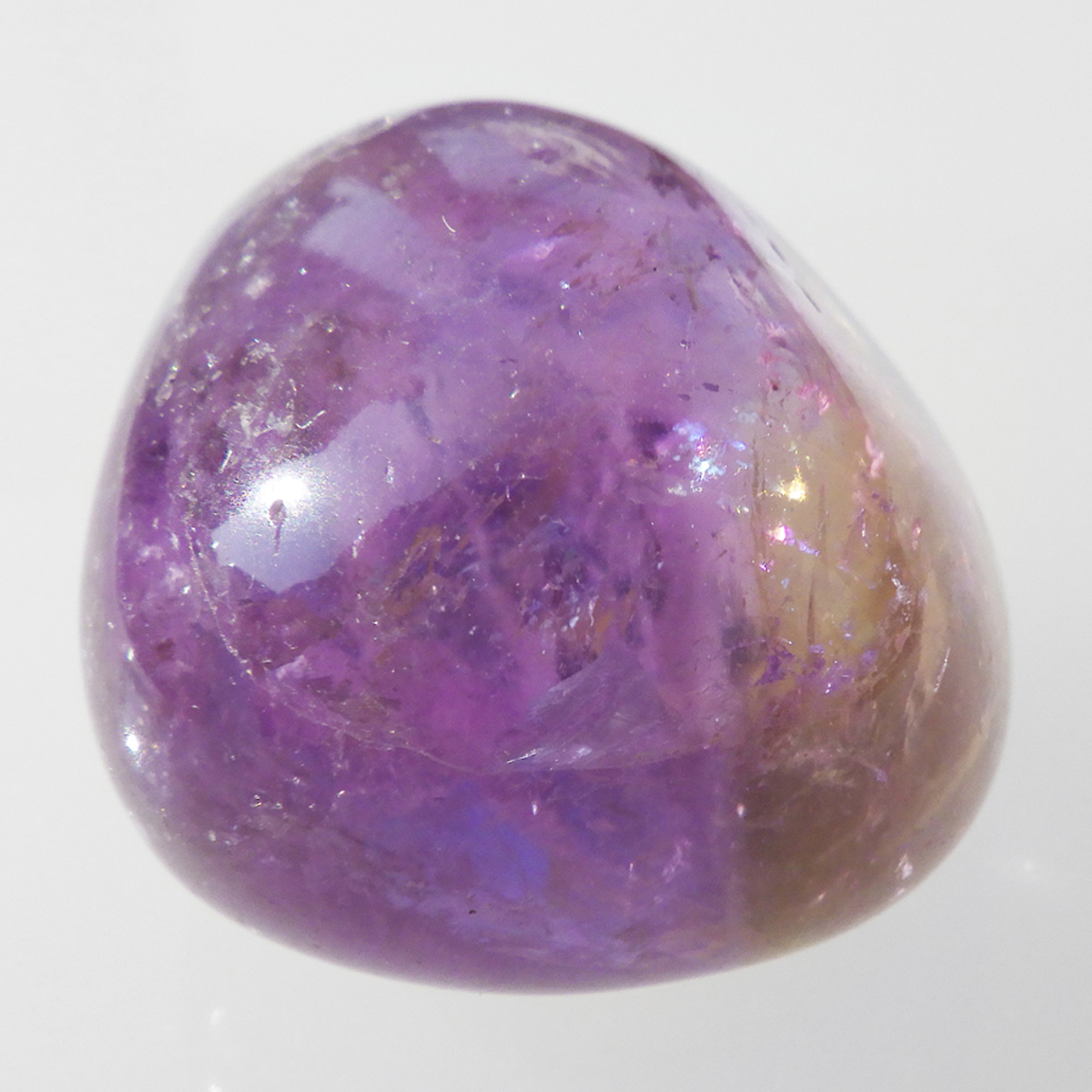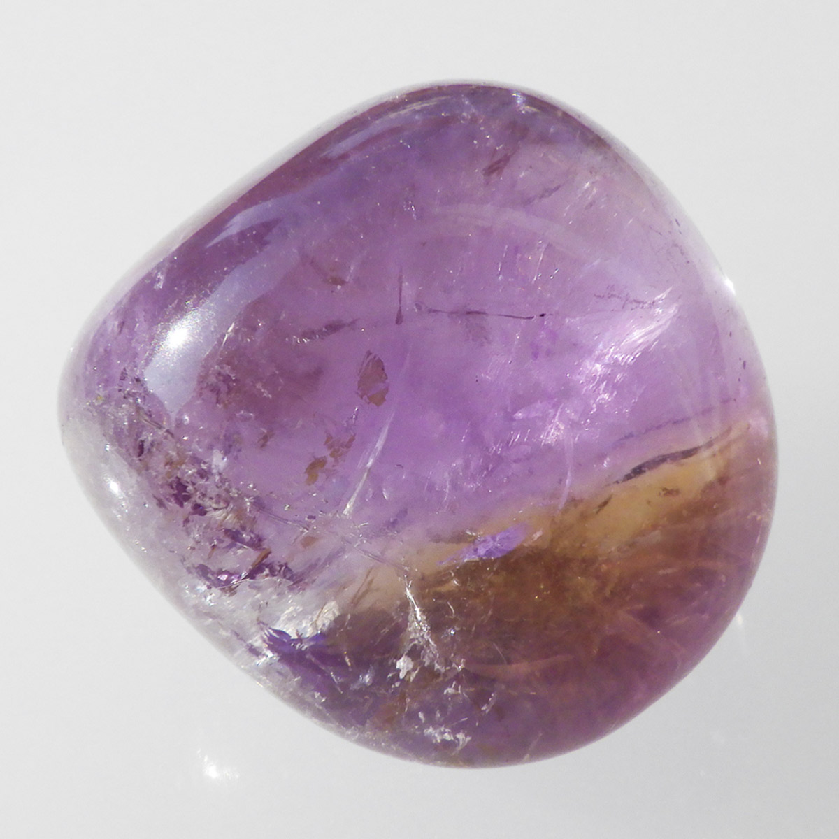 高品質ボリビア産アメトリンのタンブルです。アメトリンはアメジストとシトリンが混ざり合った石です。天然のアメトリンは極々限定された条件下でしか生成されません。透明度も抜群で、濃いアメジストとシトリンのカラーが大変美しいです。水晶の透明部分も見られ、透明〜パープル〜イエロー〜へのグラデーションは、まさに息を飲むほど美しいです。また、アメトリンを照らす光の種類や、タンブルの角度によって、濃く見えたり薄く見えたり、青っぽく見えたり赤っぽく見えたり、見ていて飽きることがありません。アメジストとシトリンの二つの顔を併せ持った魅力的な水晶です。
