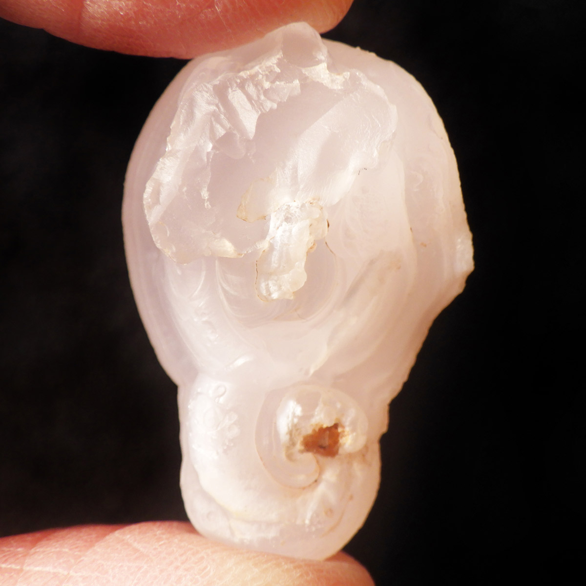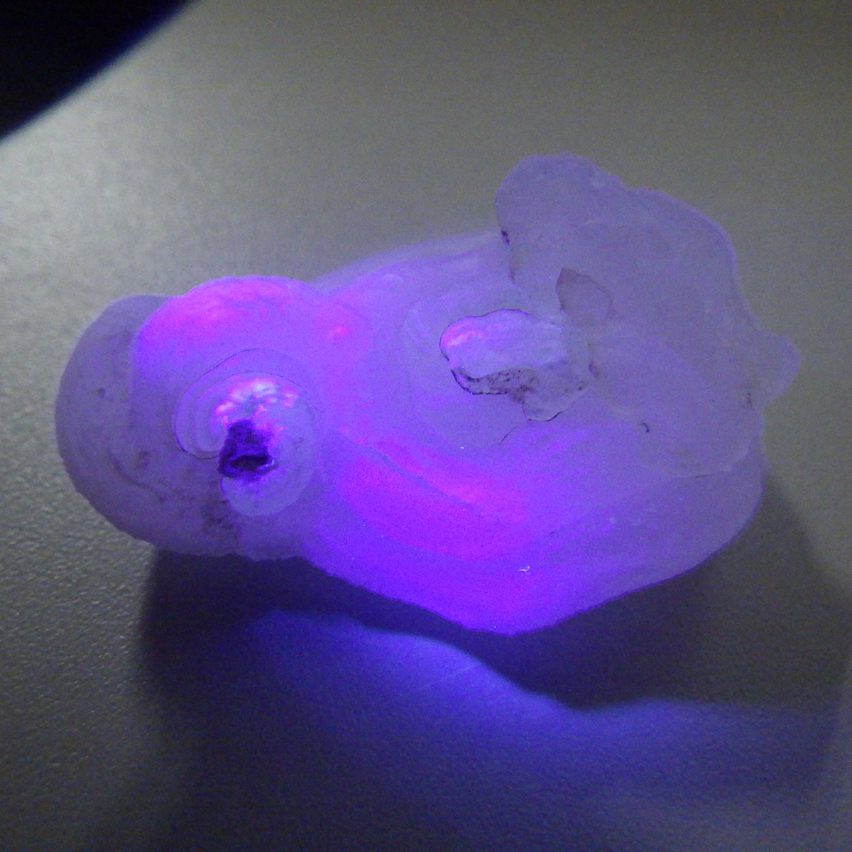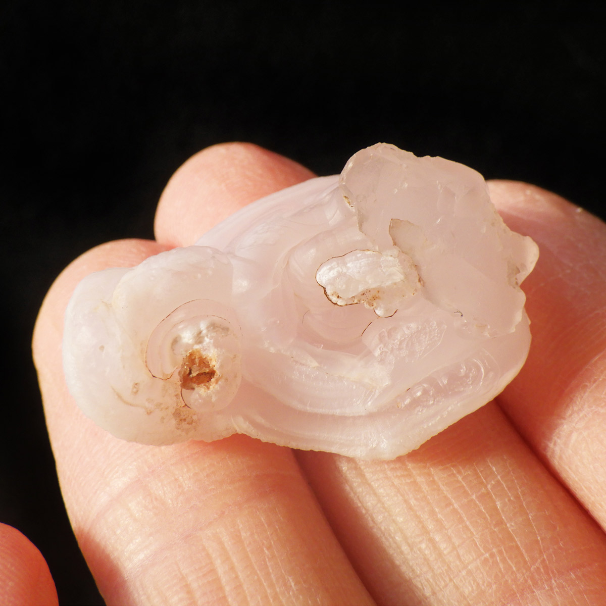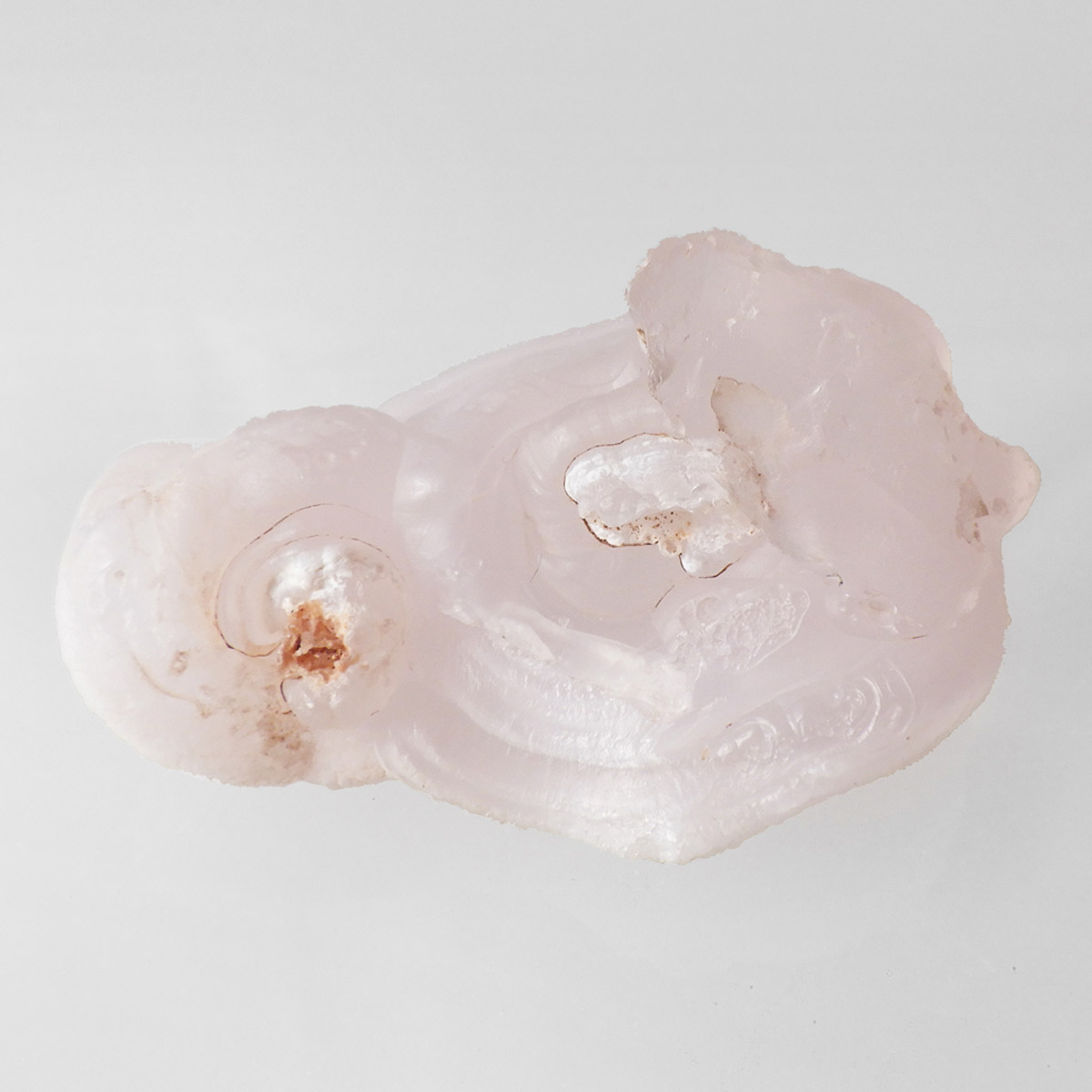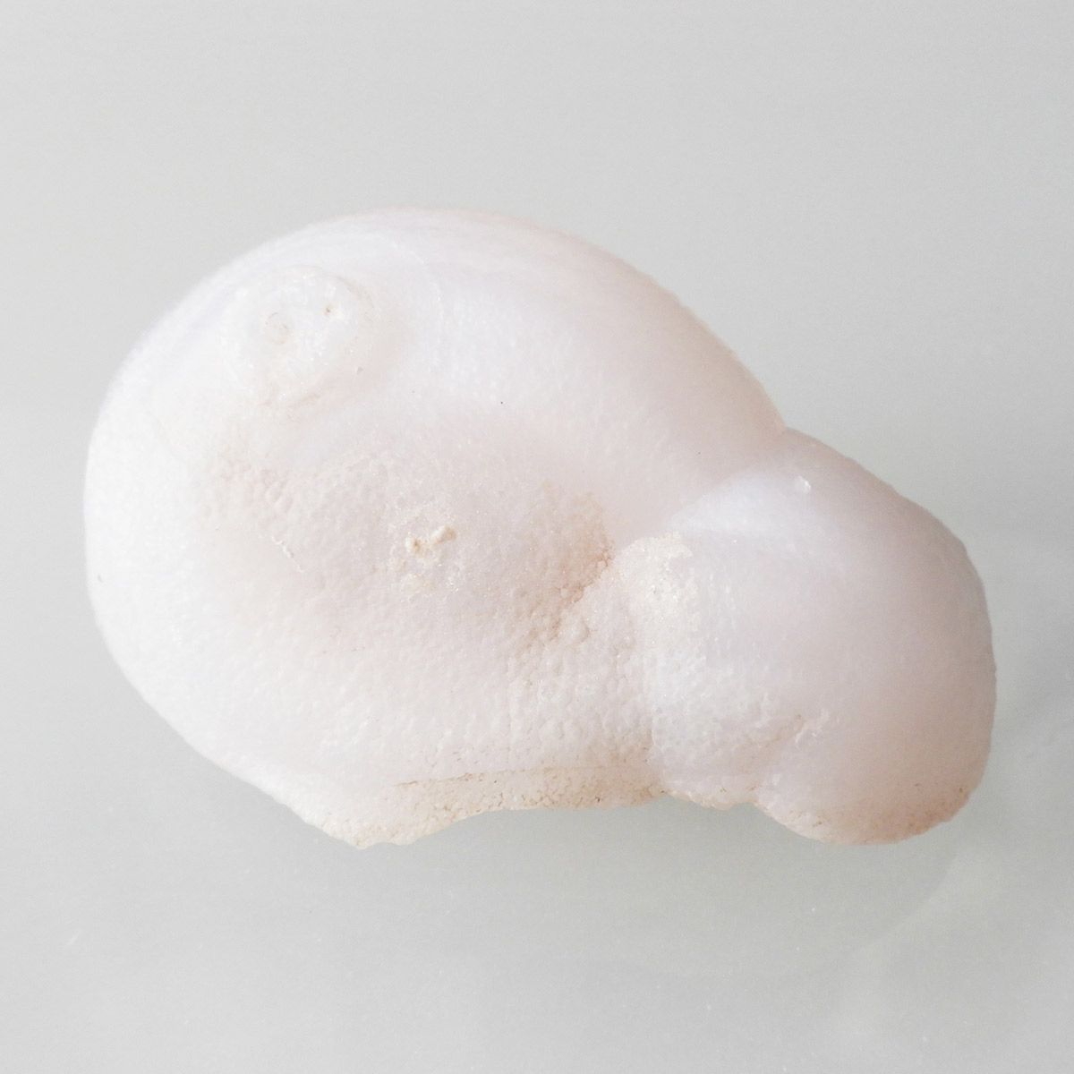 アメリカの南西部にあるニューメキシコ州産のピンクカルセドニー原石です。カルセドニーは色が多彩でカーネリアンやクリソプレーズ、アゲート、水晶などと同じ珪酸塩鉱物。カルセドニーは石英の微細結晶の集合体で透明に結晶化すると水晶になります。こちらはピンクカルセドニーですのでローズクォーツに近い鉱物になるかと思いますが、透明ではなく半透明でマットな見た目をしています。モコっとした姿がかわいらしく、優しいピンクに色付いたカルセドニーです。
