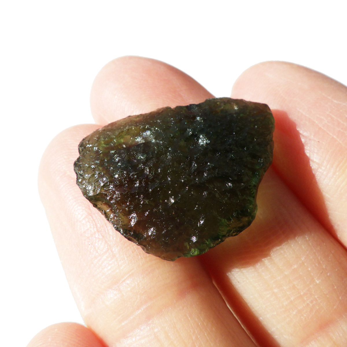 【モルダバイト(グラスメテオライト)の意味・効果】 モルダバイトは数ある石の中でも最高のヒーリングストーンの一つとされています。 孤独感や悲しみを癒し、生命力と調和力を高め、ポジティブな気持ちにさせてくれます。 古くから神聖な石として用いられ、300年程前のヨーロッパでは愛の証として恋人に送り、幸せを誓い合ったといわれています。 また、洞察力と感受性を高め、永遠の理想を実現するように働きかけてくれるといわれています。