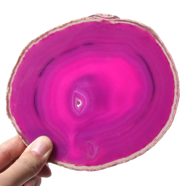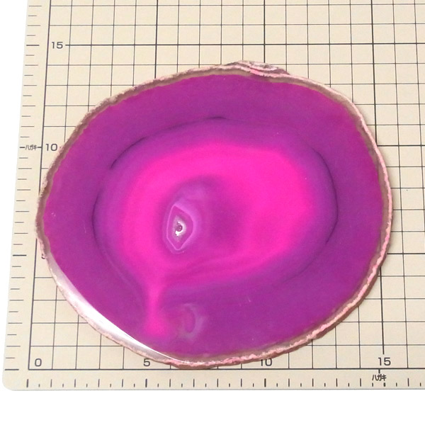 ブラジル産メノウを染色し、薄くスライスした色鮮やかなメノウスライスです。カラーはピンク、大きさは特大サイズです。