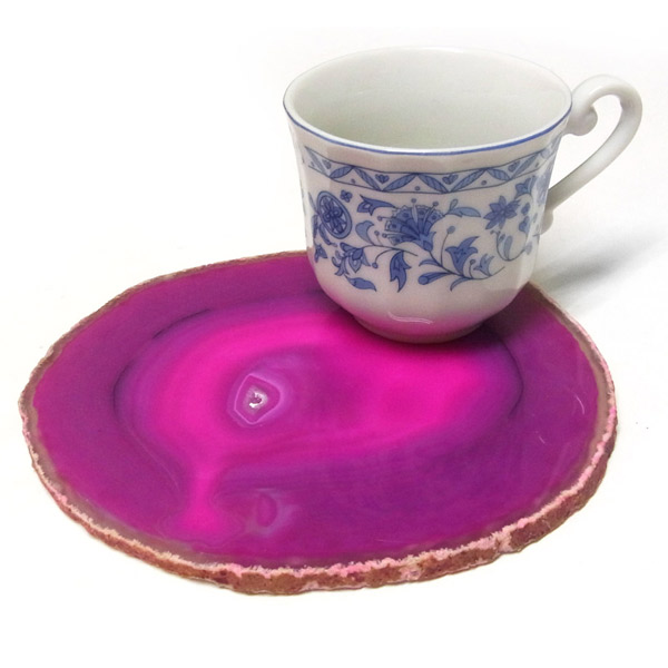 染色することにより、色の濃淡ができ、メノウの縞模様がより一層美しくなります。置物を置いたり、鉱物を置いたりのインテリアとしてや、グラスなどを置くコースターとしてもお楽しみ頂けます。