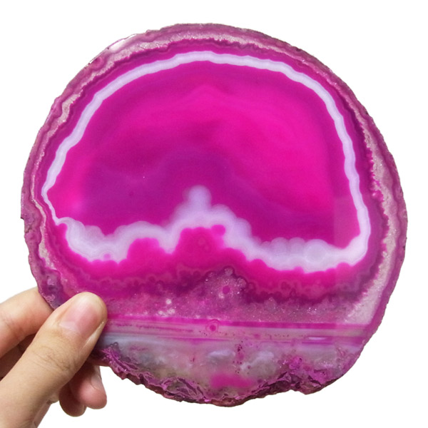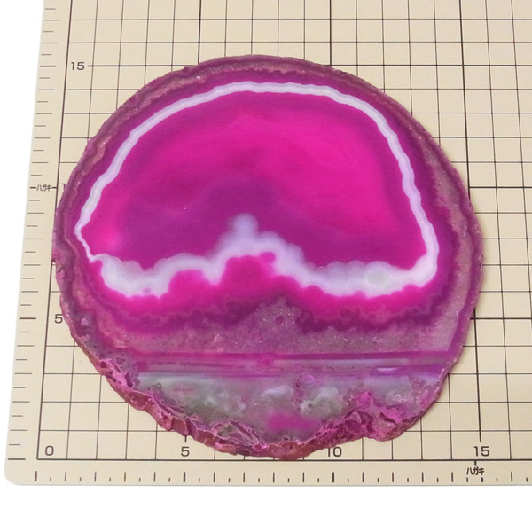 ブラジル産メノウを染色し、薄くスライスした色鮮やかなメノウスライスです。カラーはピンク、大きさは特大サイズです。