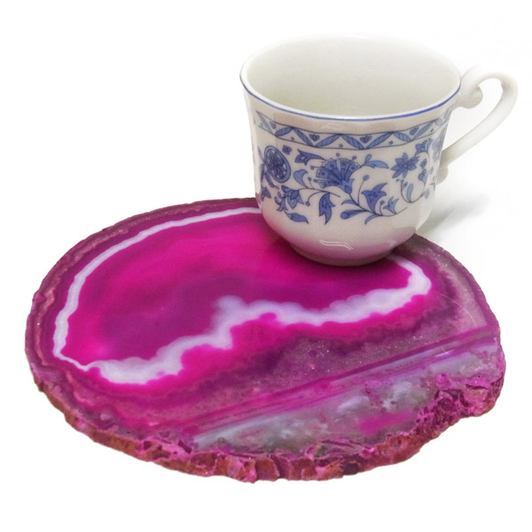 染色することにより、色の濃淡ができ、メノウの縞模様がより一層美しくなります。置物を置いたり、鉱物を置いたりのインテリアとしてや、グラスなどを置くコースターとしてもお楽しみ頂けます。