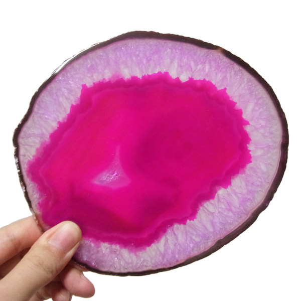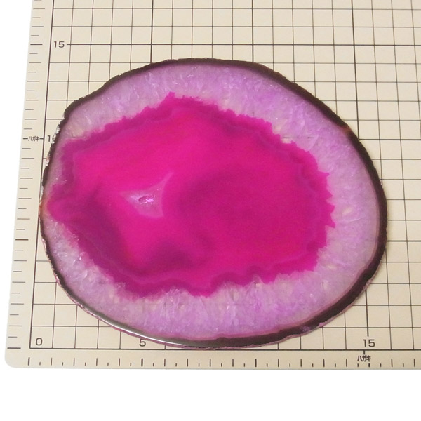 ブラジル産メノウを染色し、薄くスライスした色鮮やかなメノウスライスです。カラーはピンク、大きさは特大サイズです。