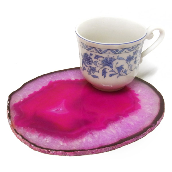 染色することにより、色の濃淡ができ、メノウの縞模様がより一層美しくなります。置物を置いたり、鉱物を置いたりのインテリアとしてや、グラスなどを置くコースターとしてもお楽しみ頂けます。
