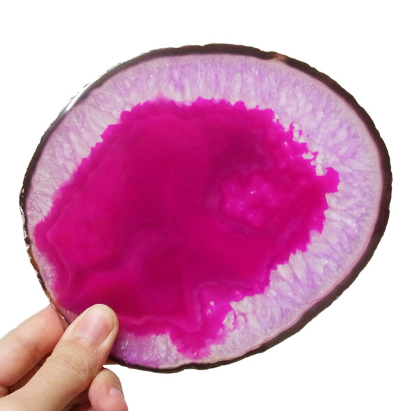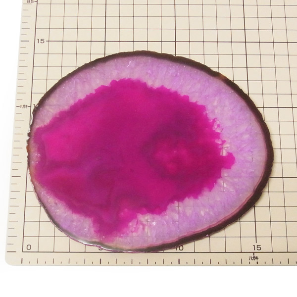 ブラジル産メノウを染色し、薄くスライスした色鮮やかなメノウスライスです。カラーはピンク、大きさは特大サイズです。