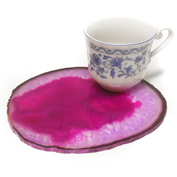 染色することにより、色の濃淡ができ、メノウの縞模様がより一層美しくなります。置物を置いたり、鉱物を置いたりのインテリアとしてや、グラスなどを置くコースターとしてもお楽しみ頂けます。