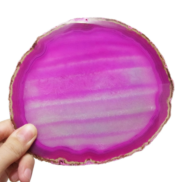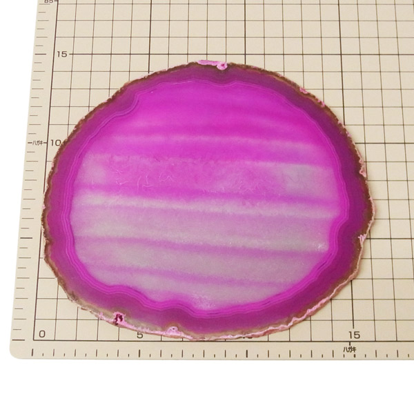 ブラジル産メノウを染色し、薄くスライスした色鮮やかなメノウスライスです。カラーはピンク、大きさは特大サイズです。