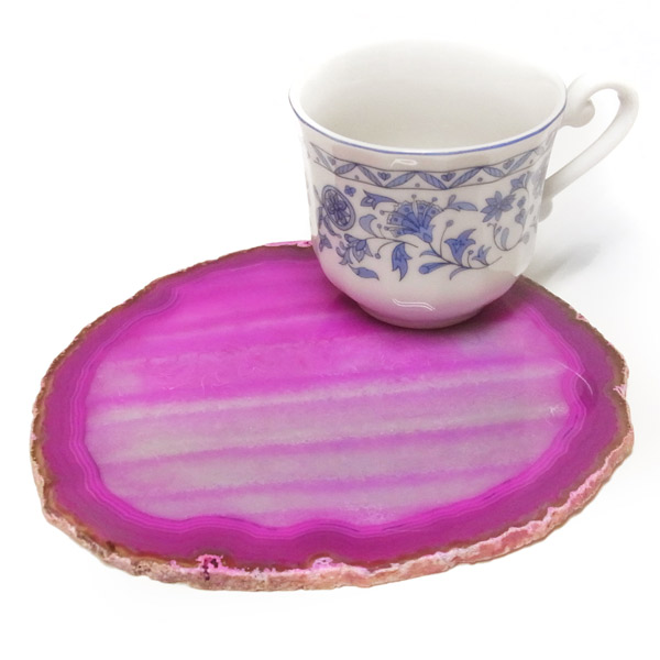 染色することにより、色の濃淡ができ、メノウの縞模様がより一層美しくなります。置物を置いたり、鉱物を置いたりのインテリアとしてや、グラスなどを置くコースターとしてもお楽しみ頂けます。