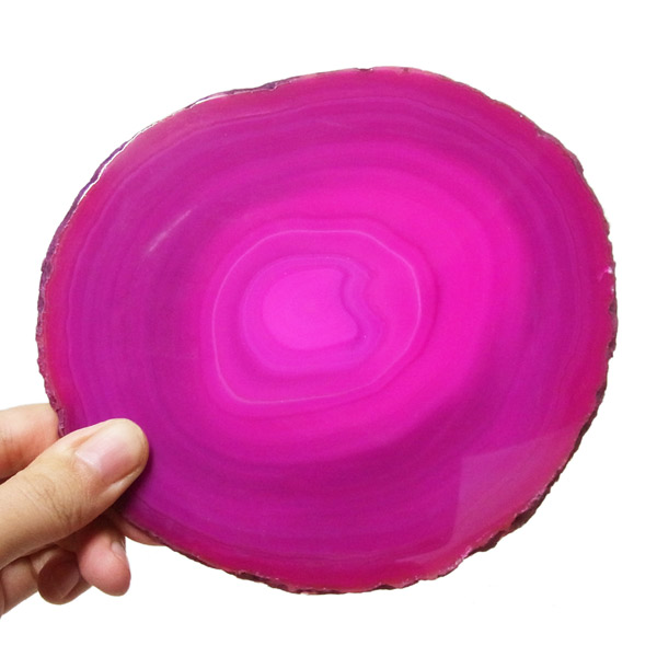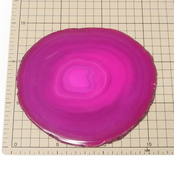 ブラジル産メノウを染色し、薄くスライスした色鮮やかなメノウスライスです。カラーはピンク、大きさは特大サイズです。