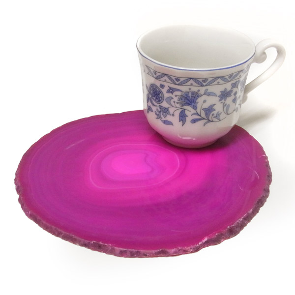 染色することにより、色の濃淡ができ、メノウの縞模様がより一層美しくなります。置物を置いたり、鉱物を置いたりのインテリアとしてや、グラスなどを置くコースターとしてもお楽しみ頂けます。