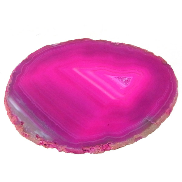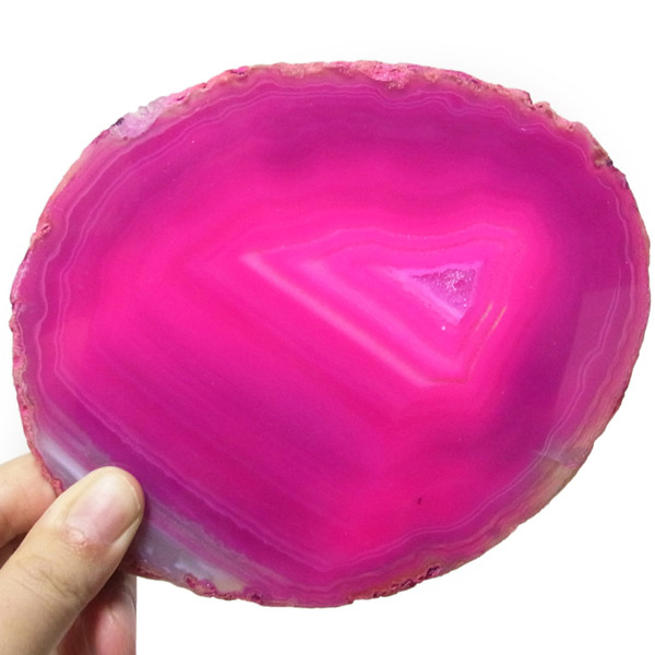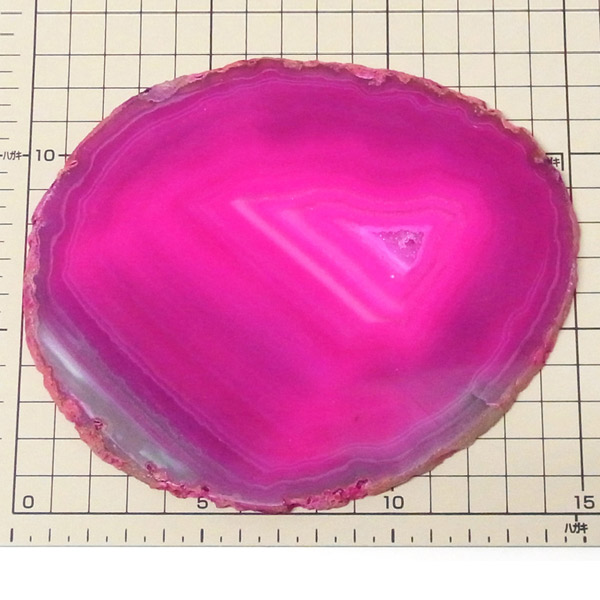 ブラジル産メノウを染色し、薄くスライスした色鮮やかなメノウスライスです。カラーはピンク、大きさは特大サイズです。