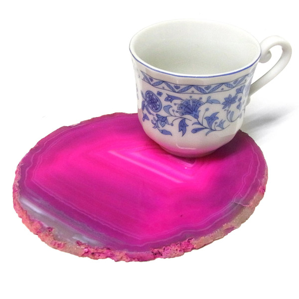 染色することにより、色の濃淡ができ、メノウの縞模様がより一層美しくなります。置物を置いたり、鉱物を置いたりのインテリアとしてや、グラスなどを置くコースターとしてもお楽しみ頂けます。