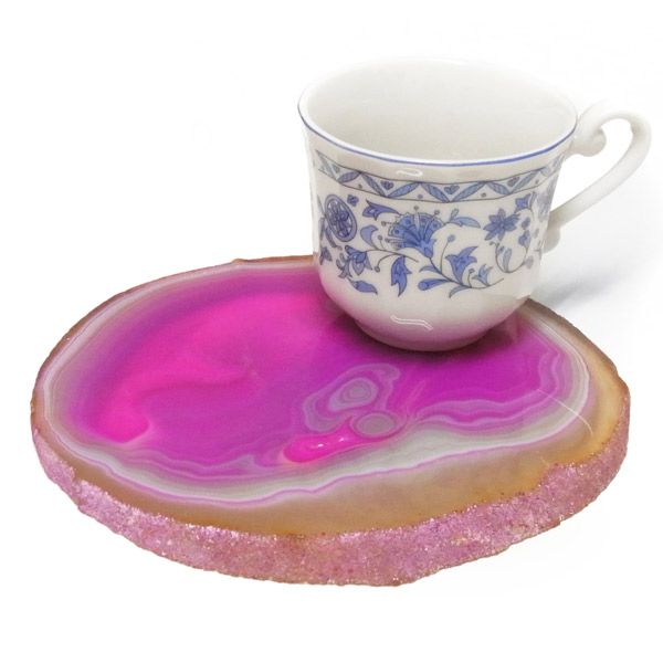 染色することにより、色の濃淡ができ、メノウの縞模様がより一層美しくなります。置物を置いたり、鉱物を置いたりのインテリアとしてや、グラスなどを置くコースターとしてもお楽しみ頂けます。