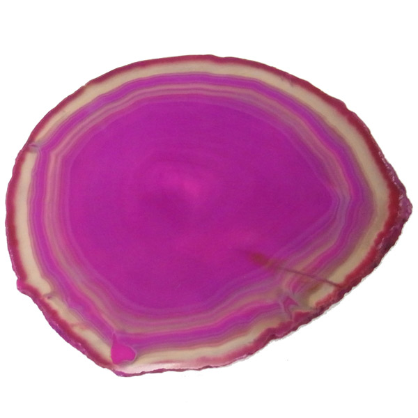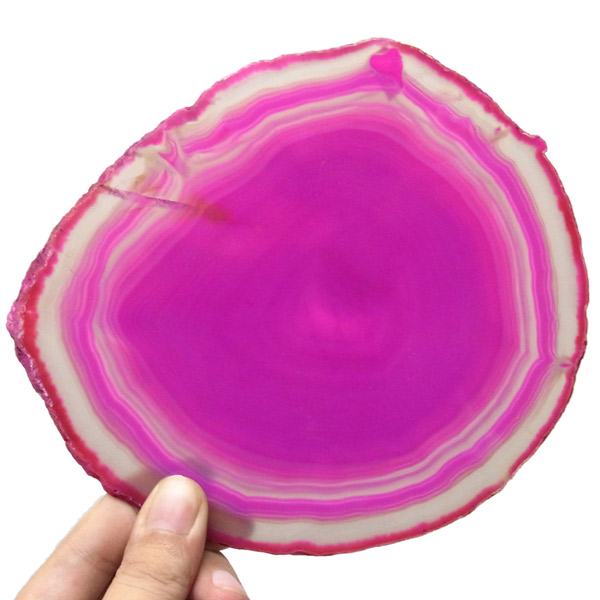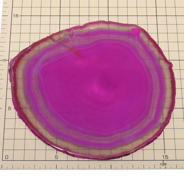 ブラジル産メノウを染色し、薄くスライスした色鮮やかなメノウスライスです。カラーはピンク、大きさは特大サイズです。